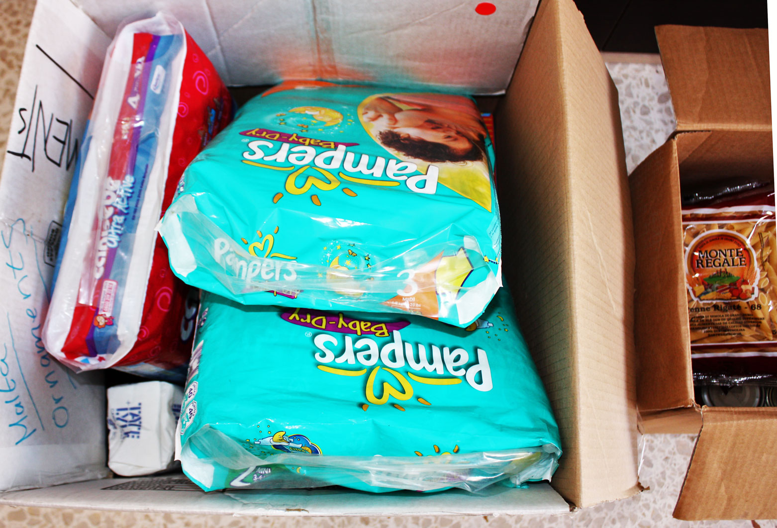 After our initial shopping (that was mentioned in our previous entry) Rita decided to get more items on her own. You can’t beat her intuition. She knew that other people will concentrate on the canned food and items that adults can use, so she added two more packs of nappies to what we have already gathered. When Daniela was coming to pick up the items she told us that not many people got nappies. So if you are still thinking to pool in, please get the baby food and nappies. They are still needed and you will be able to help in a serious matter.
