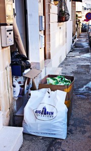 In the morning, all the boxes were taken outside and awaited transport. While moving, a bottle of red wine (we have prepared 4 bottles of wine for the first guests) had unfortunately crashed and made a mess just outside the flat. Rita jokingly mentioned that it was an offering to the gods for the good weather, and we think she was kind of right. It wasn’t raining and the event proved to be a success, so perhaps we had a Pan or Dionysus on our side. 😉