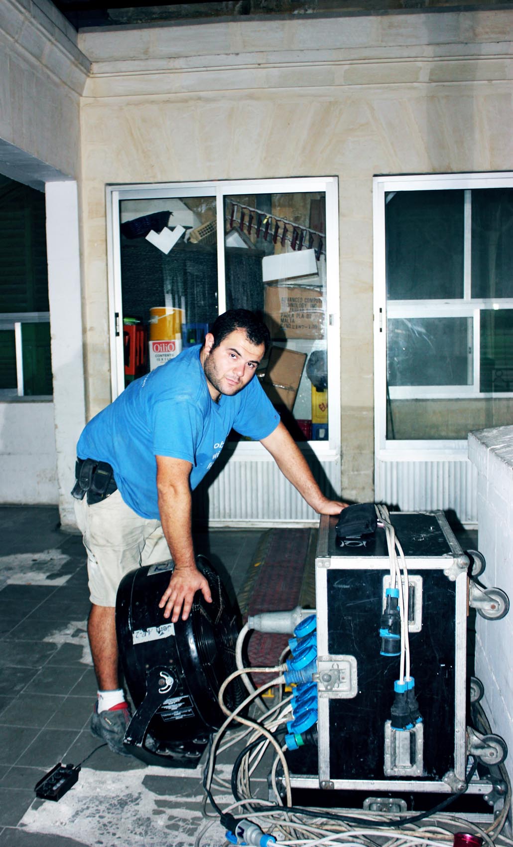 At some point we had so many guests that the cables on the floor were stamped upon resulting in a blackout. Pauleen reacted quickly and found Nexos maintenance person to fix it for us. We consider this gentleman our hero. He was assisting us all throughout the night. You can see him at work here: