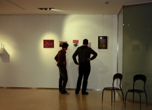 Five minutes into the opening, we had to attach the quotes to the respective paintings, which started a wave of attention to our works. At one particular moment, we had three men watching the artworks together, but when Mal tried to take a shot, another visitor appeared in view ruining the composition. We are still posting the photo, because we think its a “great fail”. (Jackie Chan always posts a footage of stunts gone wrong at the end of his movies as “great fails”).