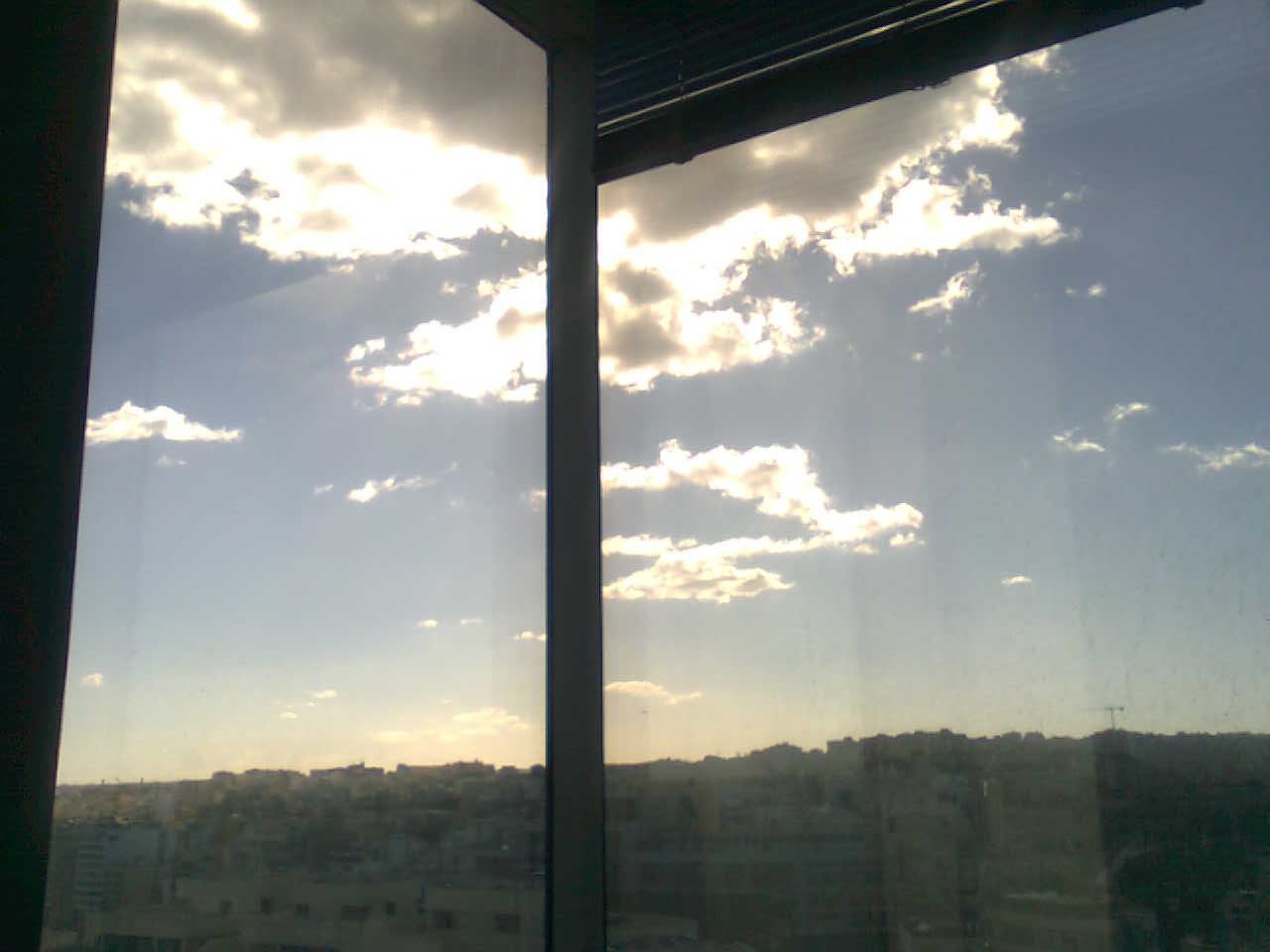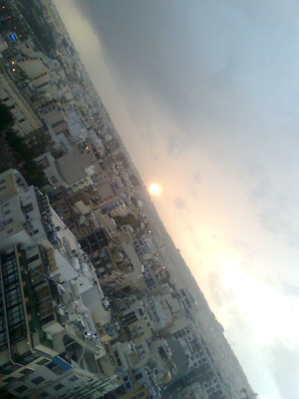 Mal is owning Nokia XpressMusic. Not the best gear when it comes to photos but its great if you need to listen to music. Another issue that Mal had to overcome was the window at work. Since she works on the 9th floor, windows open only slightly on the sides so she had to put her hand through a narrow gap and put the mobile outside and shoot nearly on instinct.