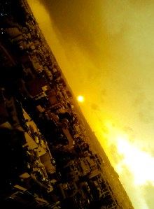 Mal had a great idea recently. She worked on the 1st. The first day of 2011 offered us a splendid sunset. Something out of some apocalyptic science fiction show or right out of “Black Hole Sun” video. A big, burning sphere was hanging low on the horizont partly covered by the clouds. Everybody in the office was running taking photos. This is why you should be ALWAYS carrying a decent camera in your bag, folks. But if you dont have anything decent in hand, shoot with what you have. Even a mobile phone.