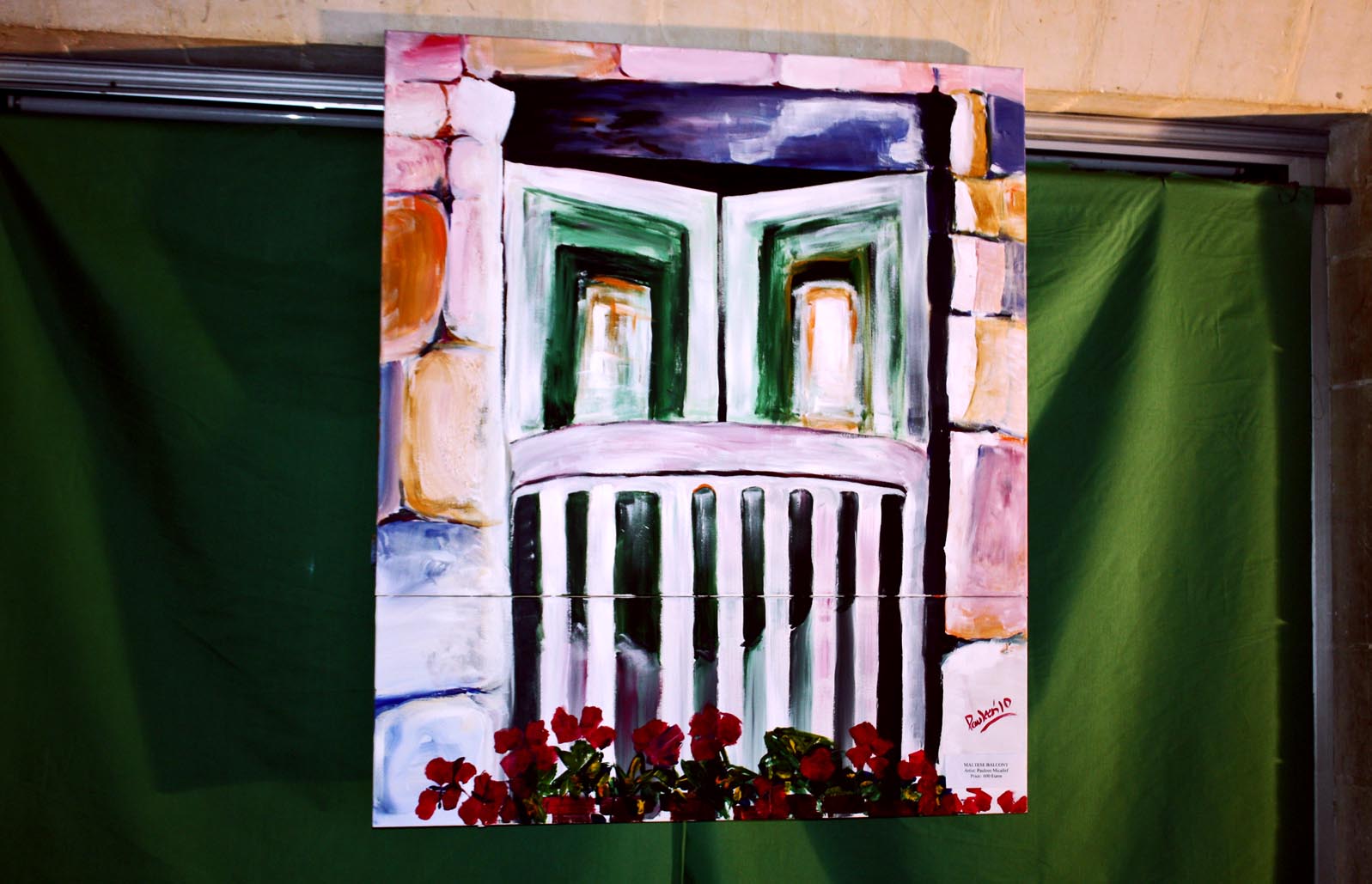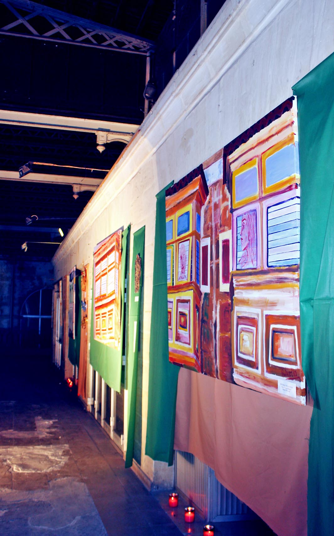 Pauleen`s idea for Notte Bianca was to present traditional Maltese balconies on large canvases. They have been the base for what we were aiming for – to create a busy street filled with art inside a building and make it look like it was outside not inside. Pauleene`s paintings were hanged in such a way that if you looked from afar, you had an impression of being among real houses.