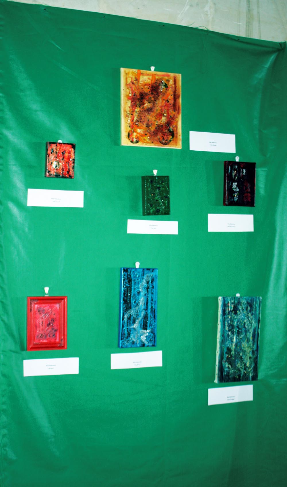 You have to call Rita a jack of all trades. Each of her artwork was carefully hanged on a coloured fabric (green or orange) between display windows and matched the series of large canvases provided by Pauleene. The variety of artworks was in place as we were hoping to create artisan market with all the variety of products that you can find on a real market.