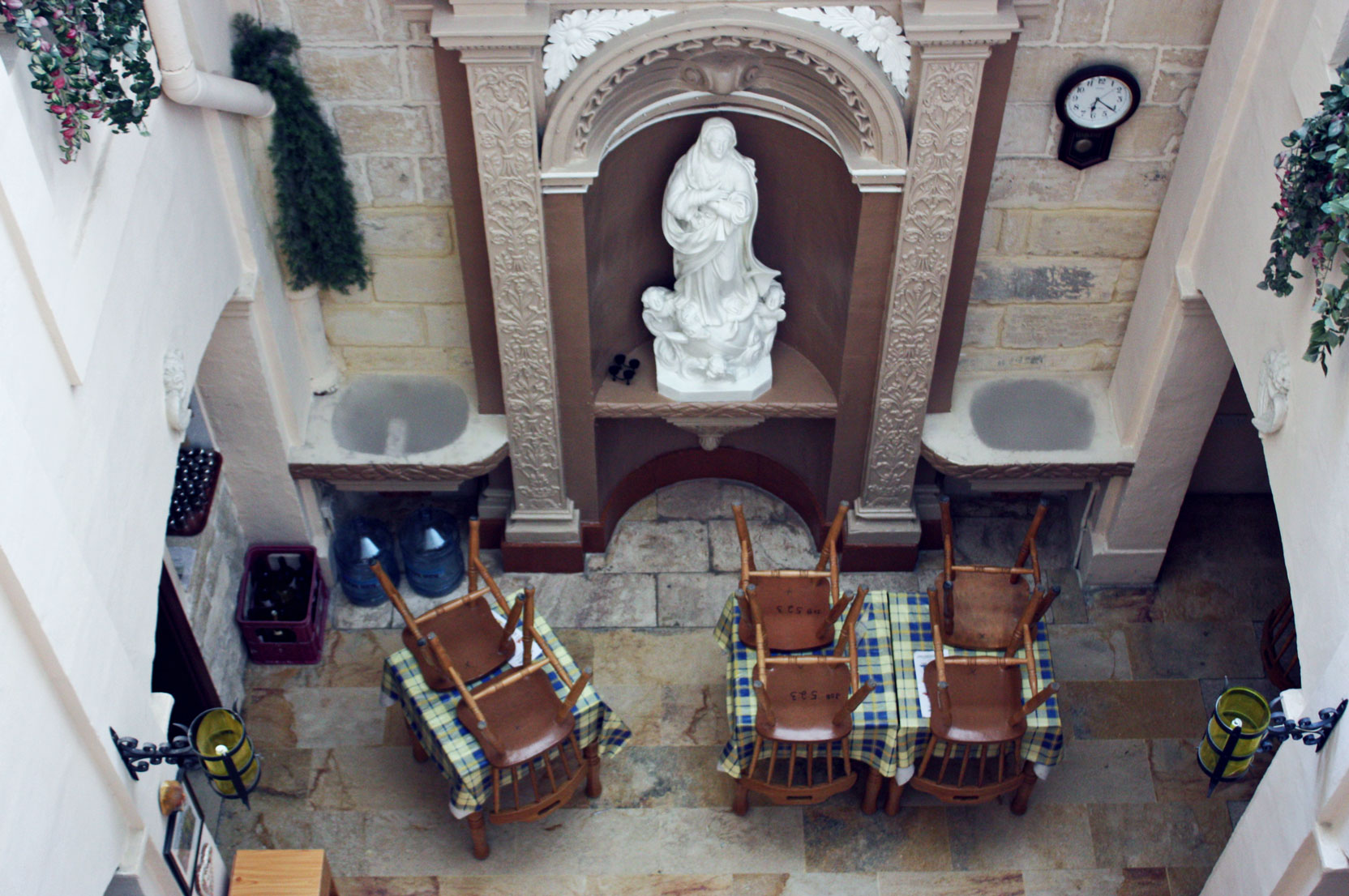 We wouldn’t be ourselves if we haven’t passed the bar on our way. Unfortunately, it was closed, but if you visit us during Notte Bianca, you will find it open. The Maiden sculpture inside is just breathtaking. Mal tried to photograph it from the above, so please excuse a weird angle and lack of quality on the photo.