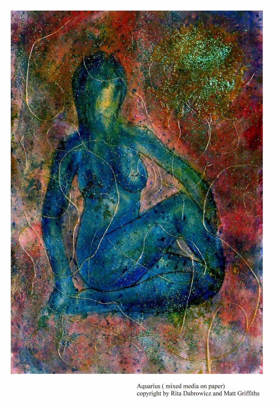 In legends, Aquarius is typically presented as a male, a beautiful Greek boy kidnapped by Zeus to become a cup bearer to Olympian Gods. Here, the boy becomes a woman trapped under the water, awaiting her release.