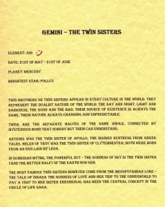 As usually, the best comments are the last ones. So who is a Gemini? A person of many interests and with friends in all the right places. Moody, but adapts quickly. Changeable but always the same, positive and negative at the same time. It’s hard to get to know them, but once you do, you gain a truly wonderful friend or a partner for life!