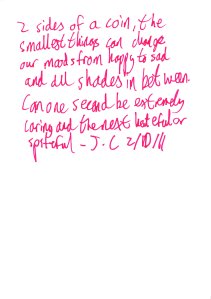 The last page was written by three different people. Salib Mirza wrote a very intriguing comment: “Clouded maze of electrical thought”. Maria Gatt was more conventional stating: “All the opposites in one person, both positive and negative”. The last, entry said “Gifted, talented but not always finish the things (tasks, ideas) they started. They understands others, they are caring but sometimes egoists”.