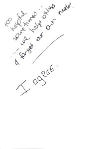 Reading through the guestbooks, we discover sometimes a random comment that has nothing to do with the theme of an exhibition or anything/anyone else. Our next note, left by an anonymous contributor, is a great example of such creativity. It reads “I *heart* my boat”. Maybe the author was born under the sign of Pisces and wishes to voice his/hers love for water and yachting? Or maybe the boat is called “the Fish”? Anyway, we decided to include this page just for the sake of this record (and because it made us laugh too!)