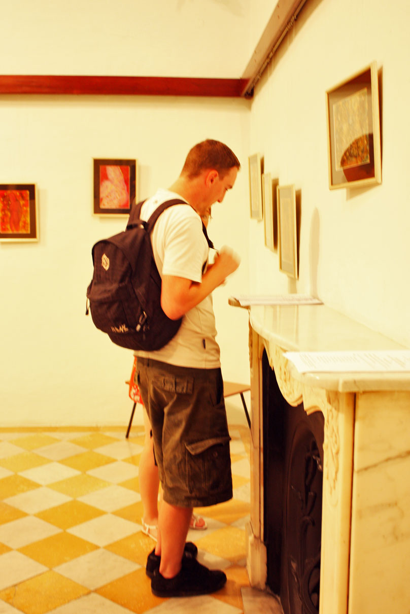 THE ATRIUM: The first exhibition room is known as “The Atrium” – The Heart of the house. Originally, it was a lounge for the visiting guests of the Messina Family. Martin and Malicia’s photographs were displayed there: Martin’s works on the left and Malicia’s on the right. You can see the nearly entire room with a visitor standing directly in between the pictures.