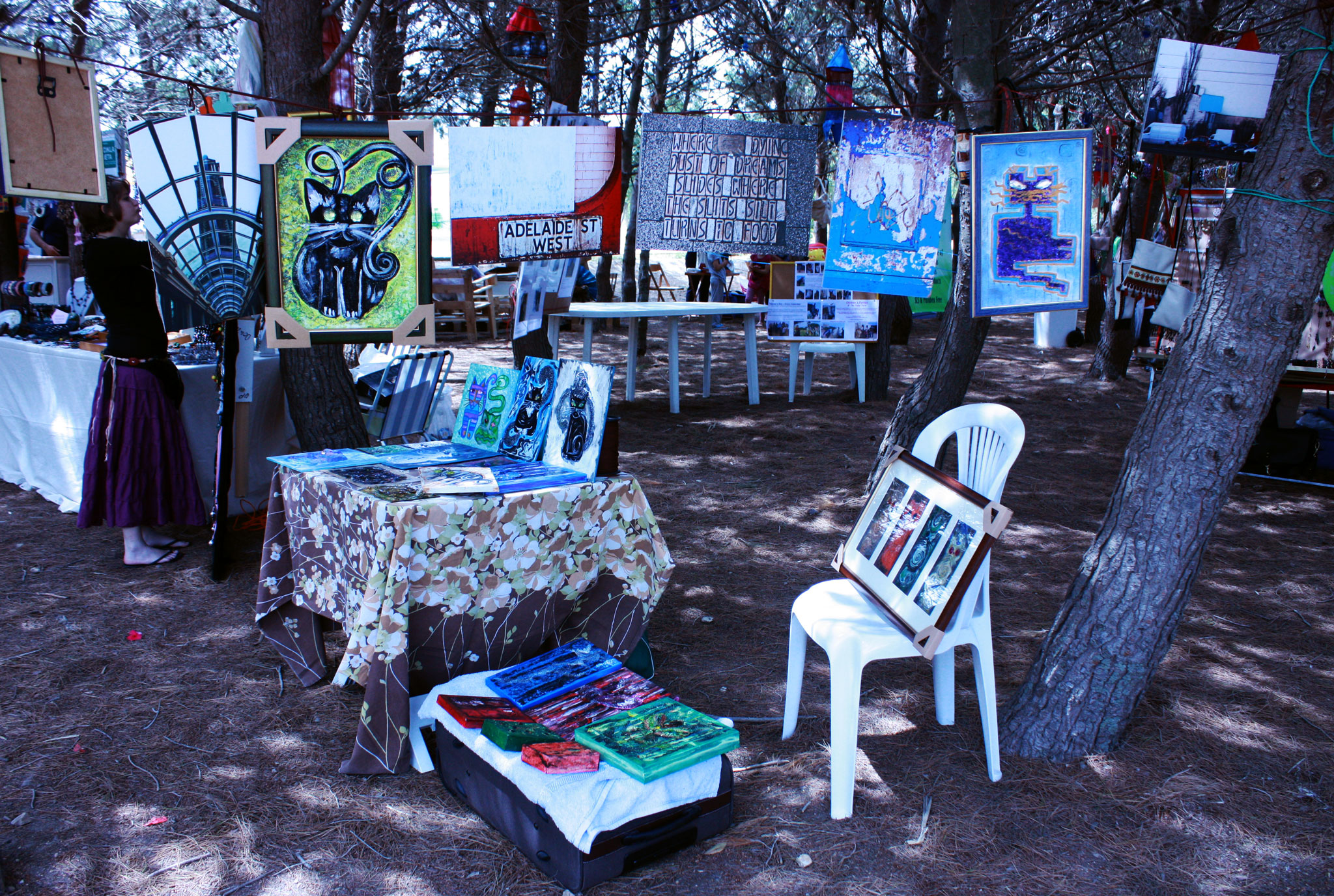 The festival allowed the artist to sell their crafts and collect money for charity, individual or collective artistic projects. We set up our small open-air store very close to one of the stages and across the road from our Tree of Art. It was a perfect spot: we enjoyed great music hidden from the heat in the shade, had a splendid view (Mal could take many interesting pictures without the need of going far!) and we could talk freely with guests visiting us from both sides of the National Park.