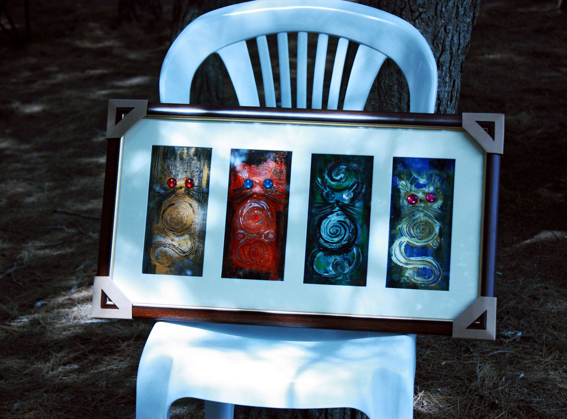 One of the most popular artwork displayed at the festival was entitled simply “4 cats”. It was a composition of four smaller pictures representing the four season of the year. Alfie, the golden cat was the Summer, Tru – a fiery red kitten symbolized the Autumn, Eevie impersonated the Spring and Rowena the white was the symbol of Winter. You can see the each of the smaller pictures by clicking on the links below: