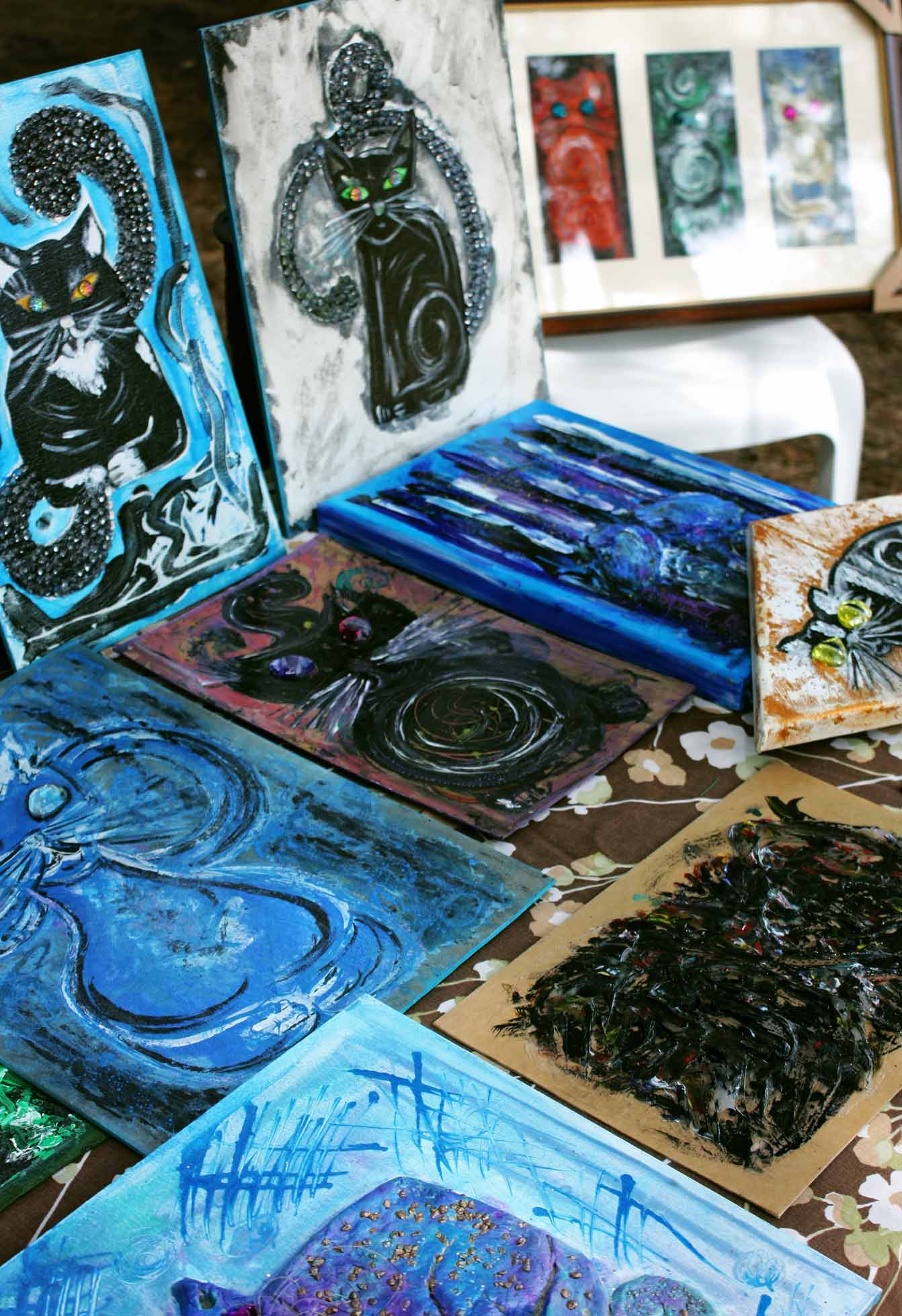Cats were the main theme on our stand. We called our little shop „The cat corner” as Rita prepared a special collection of colorful and abstract cat images entitled „The M-cats”. If you’d like to see the high resolution scans of each cat artwork, please visit our blog from 2011, where we described each painting in detail: