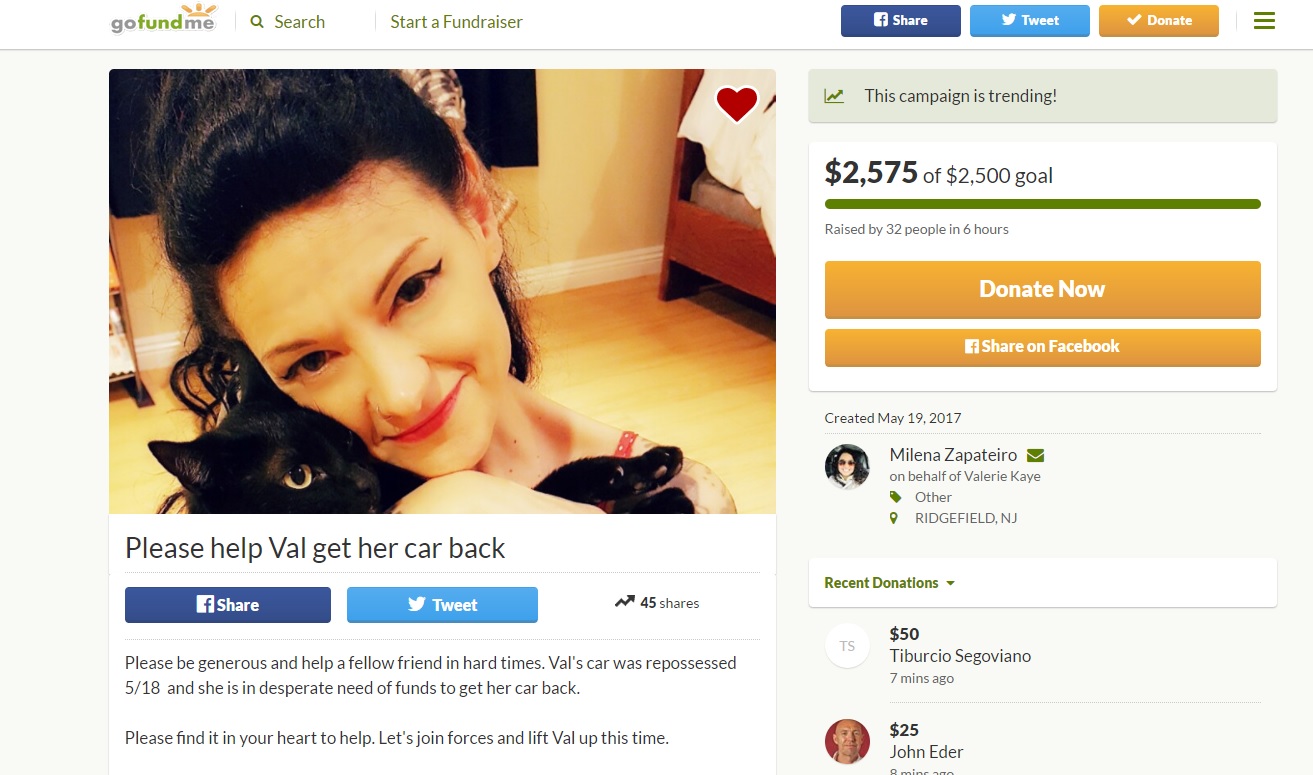 That means Val may recover her car and pay all the necessary fees and charges. But let`s not call it a victory yet. We strongly appeal to anyone who wishes to still contribute – do it. Help Val to assure she can safely be back on her road to build a new successful career. It ain`t easy, and if you can offer a helping hand or few bucks or RTs, we all will be grateful.