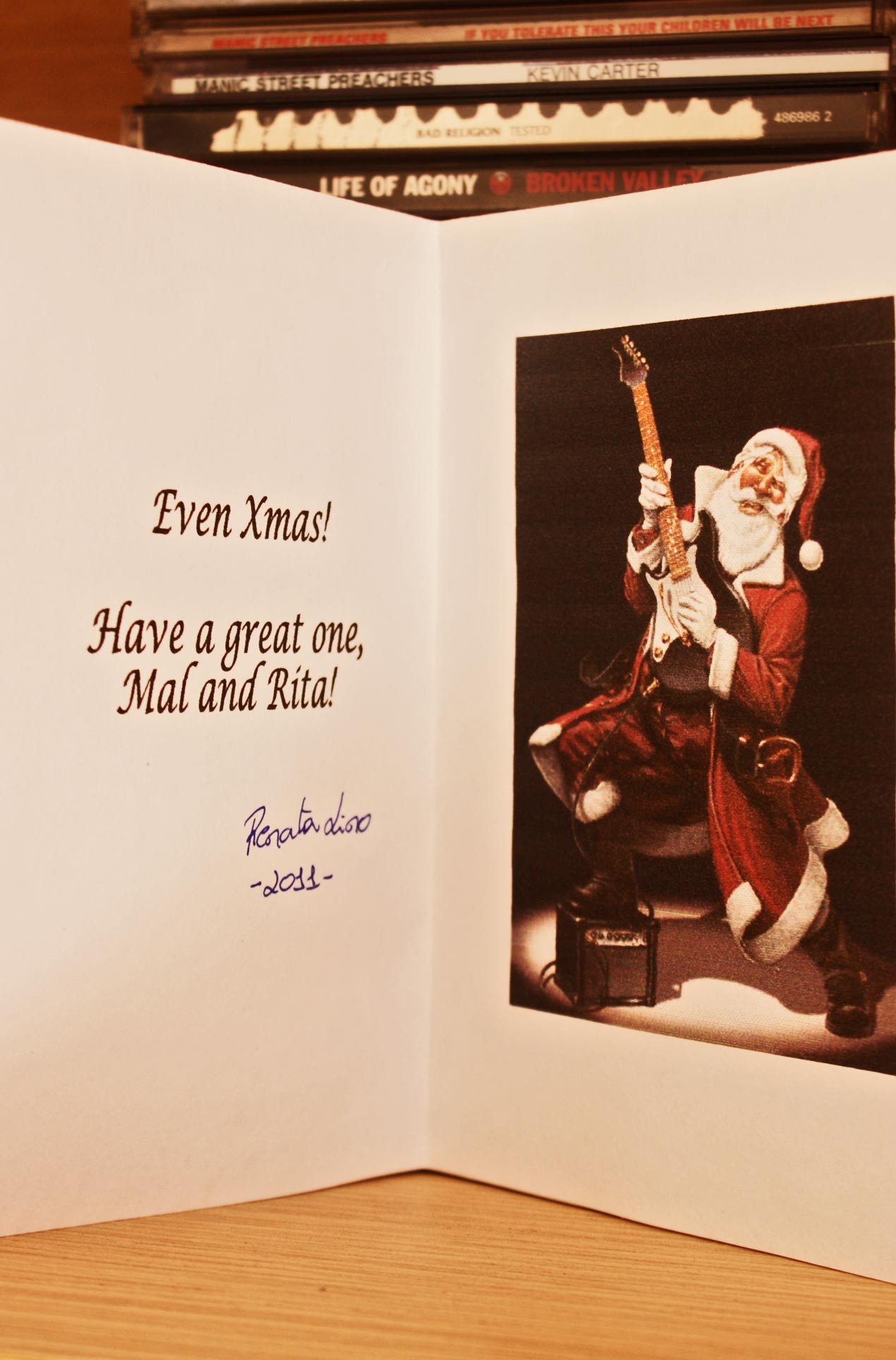 Santa is rocking inside Renata’s handmade Christmas card. It comes with an autograph!