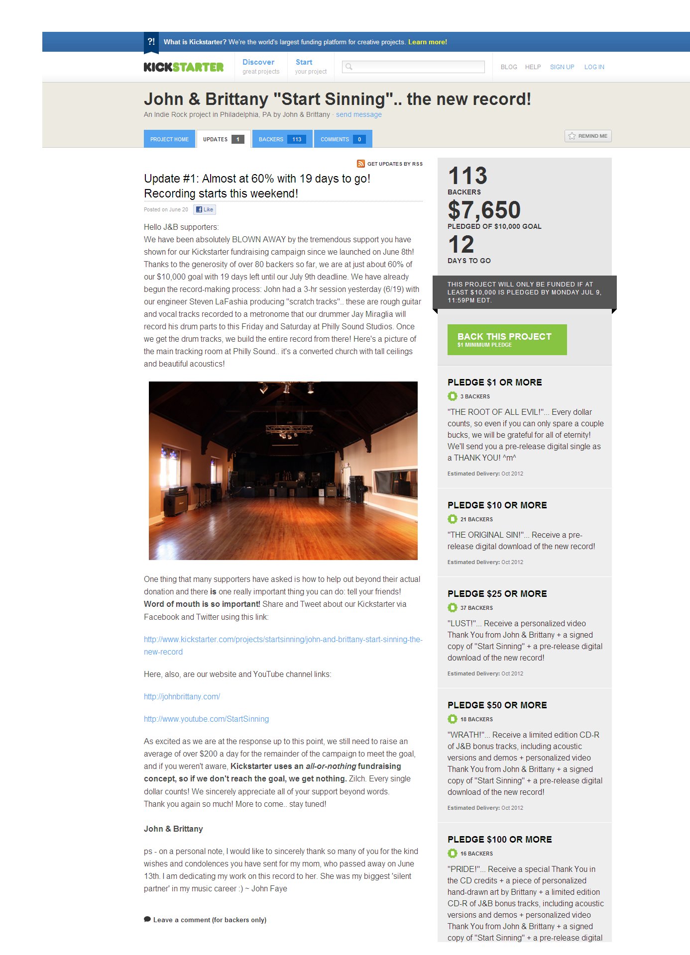 http://www.kickstarter.com/projects/startsinning/john-and-brittany-start-sinning-the-new-record/posts