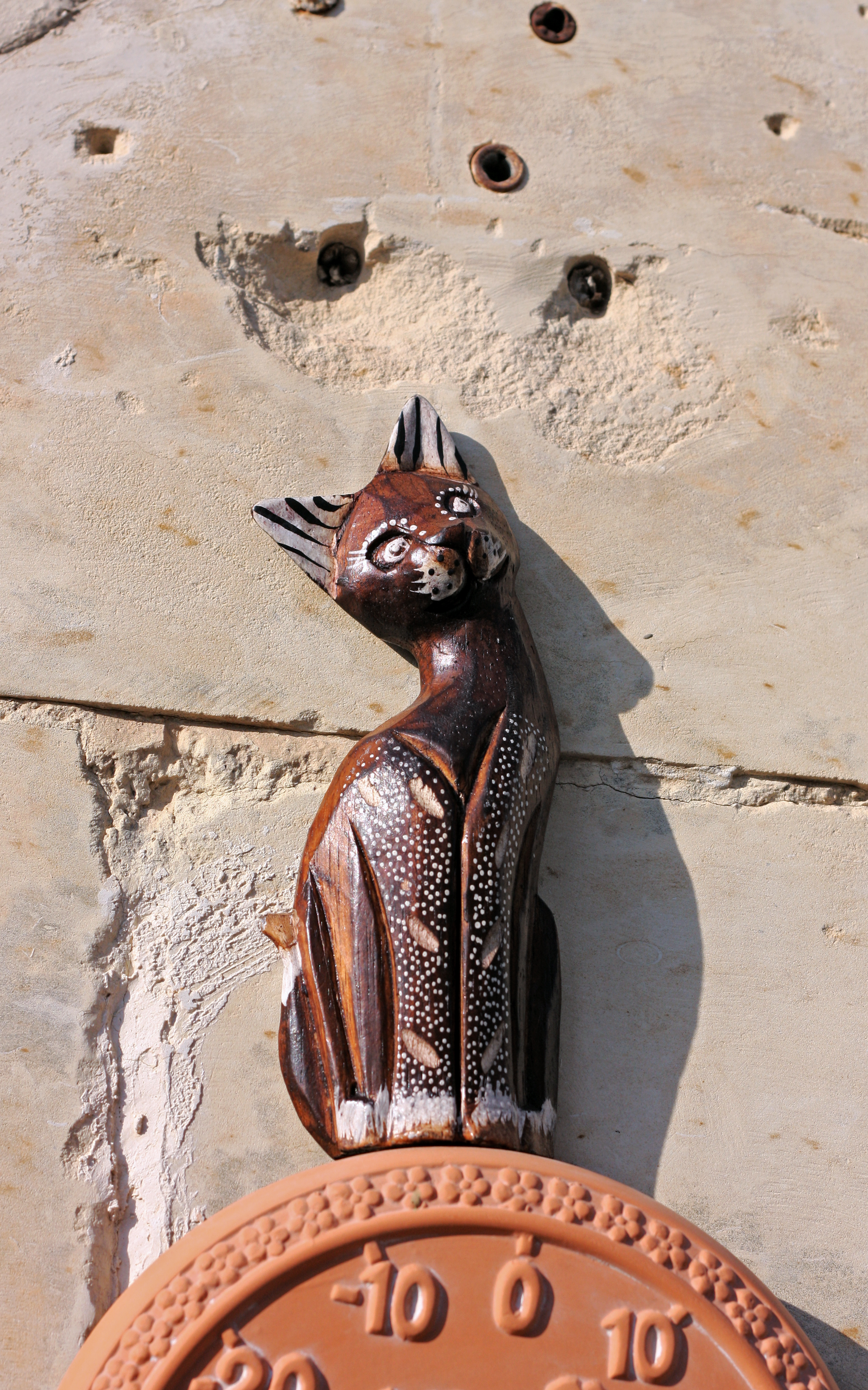 Bread box cat /Sundial Cat – country of origin: Senegal (handicraft), bought from a street vendor in Malta, June 2012.