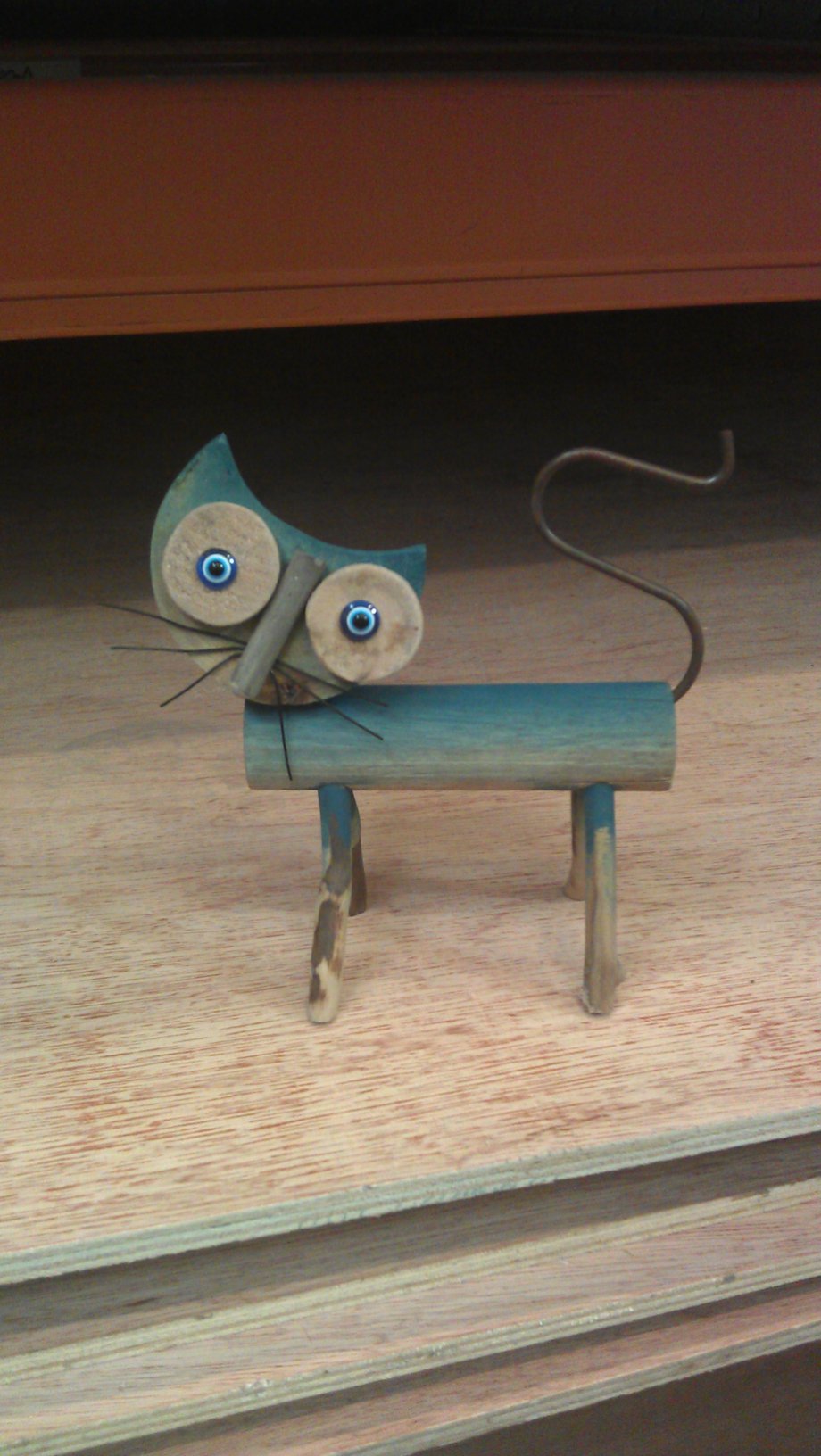 A friend bought this absolutely crazy-looking wooden cat from her holidays in Portugal. When she showed it in the office, everybody burst out laughing. The cat became a favourite among Rita’s co-workers who would borrow him and keep him at their own desks. The photo session for taken at store warehouse near Rita’s company and we have to admit it suits the cat perfectly!