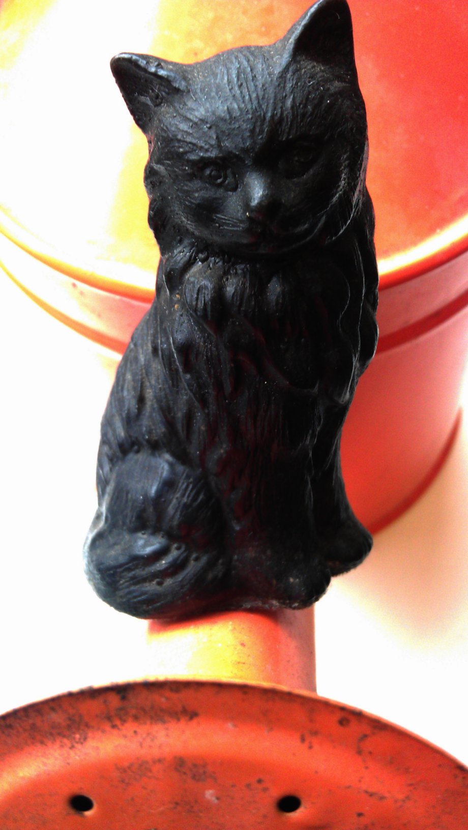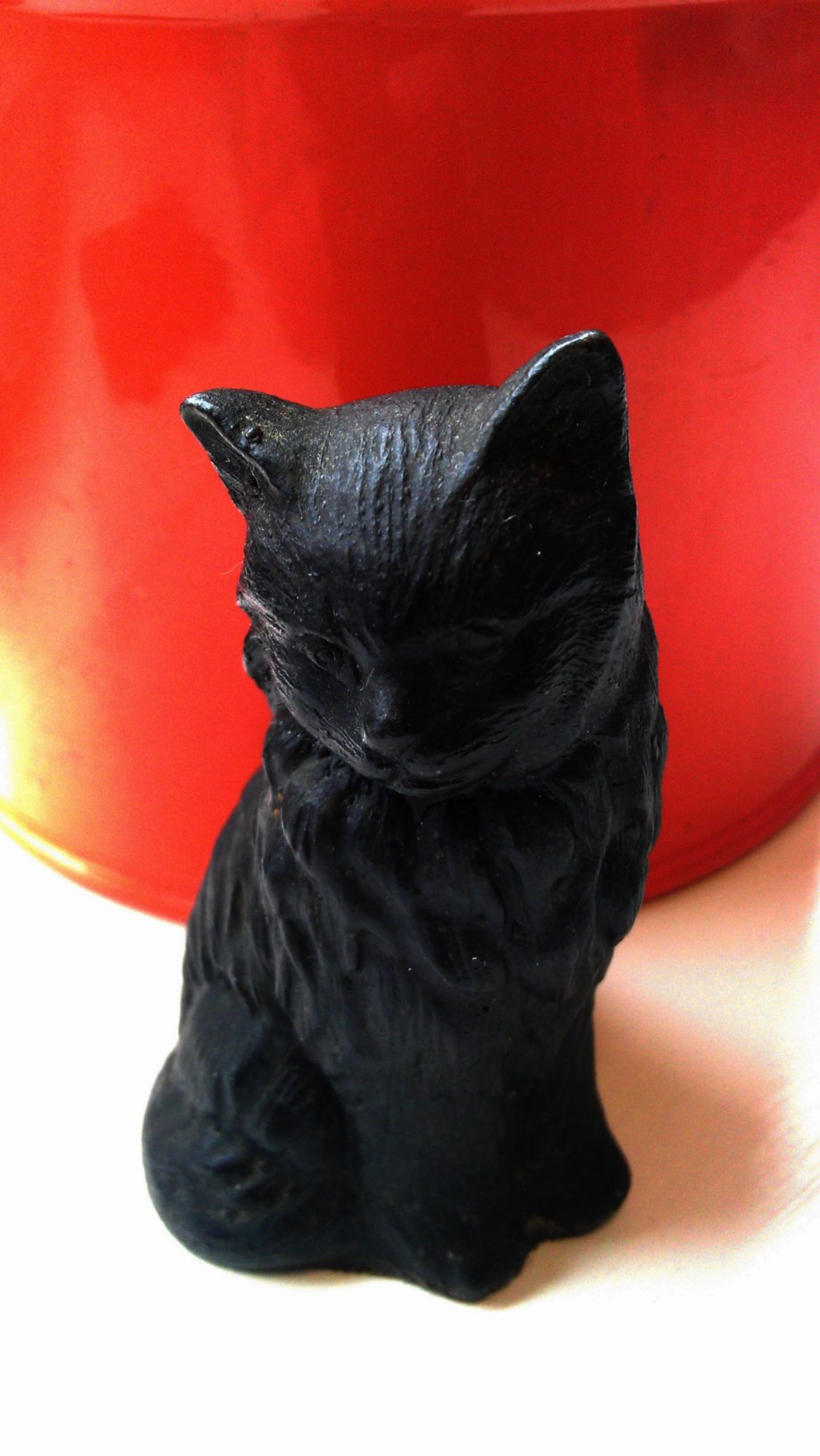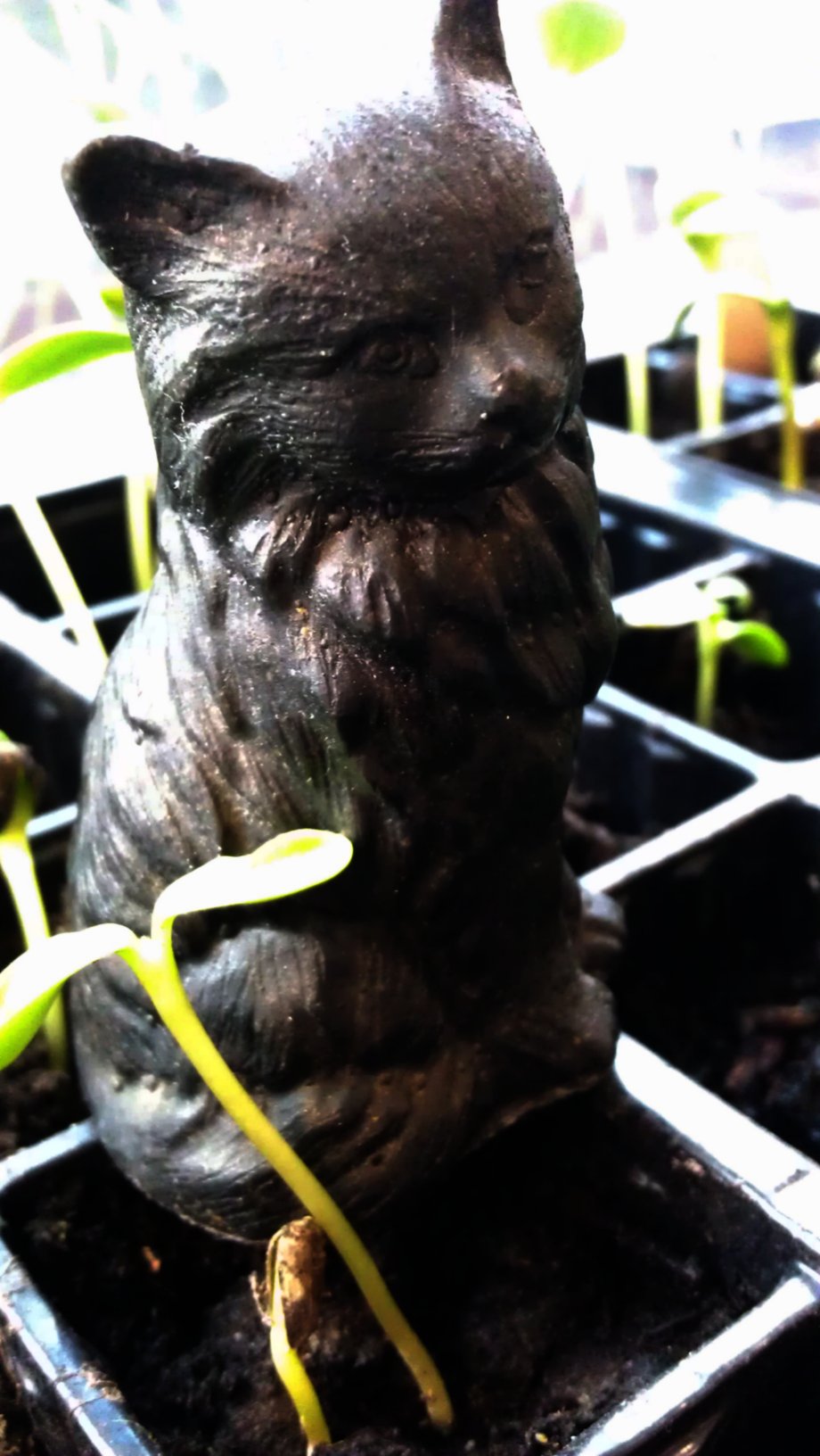 Gill is not sure who sculpted the cat from coal, or how log it has been in Agnes’ possession. The local antique dealer thinks the cat was made in early 80’s, so it can be considered vintage. We photographed the black beauty at work, where Rita’s co-workers set up a small windowsill garden. The results are stunning, don’t ya think?