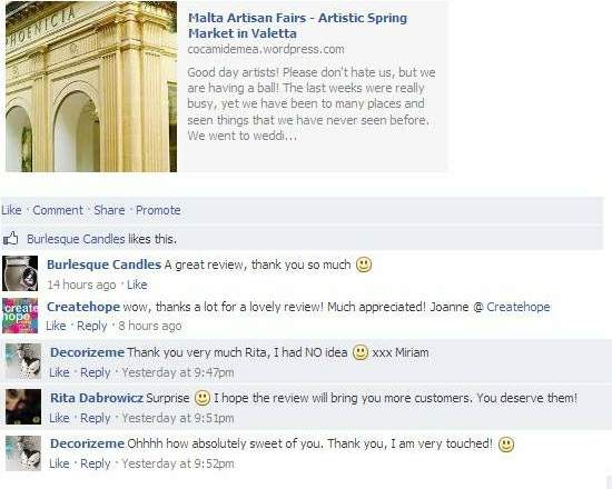 1. Malta Artisan Fairs have posted a link to our blog on their official Facebook page: