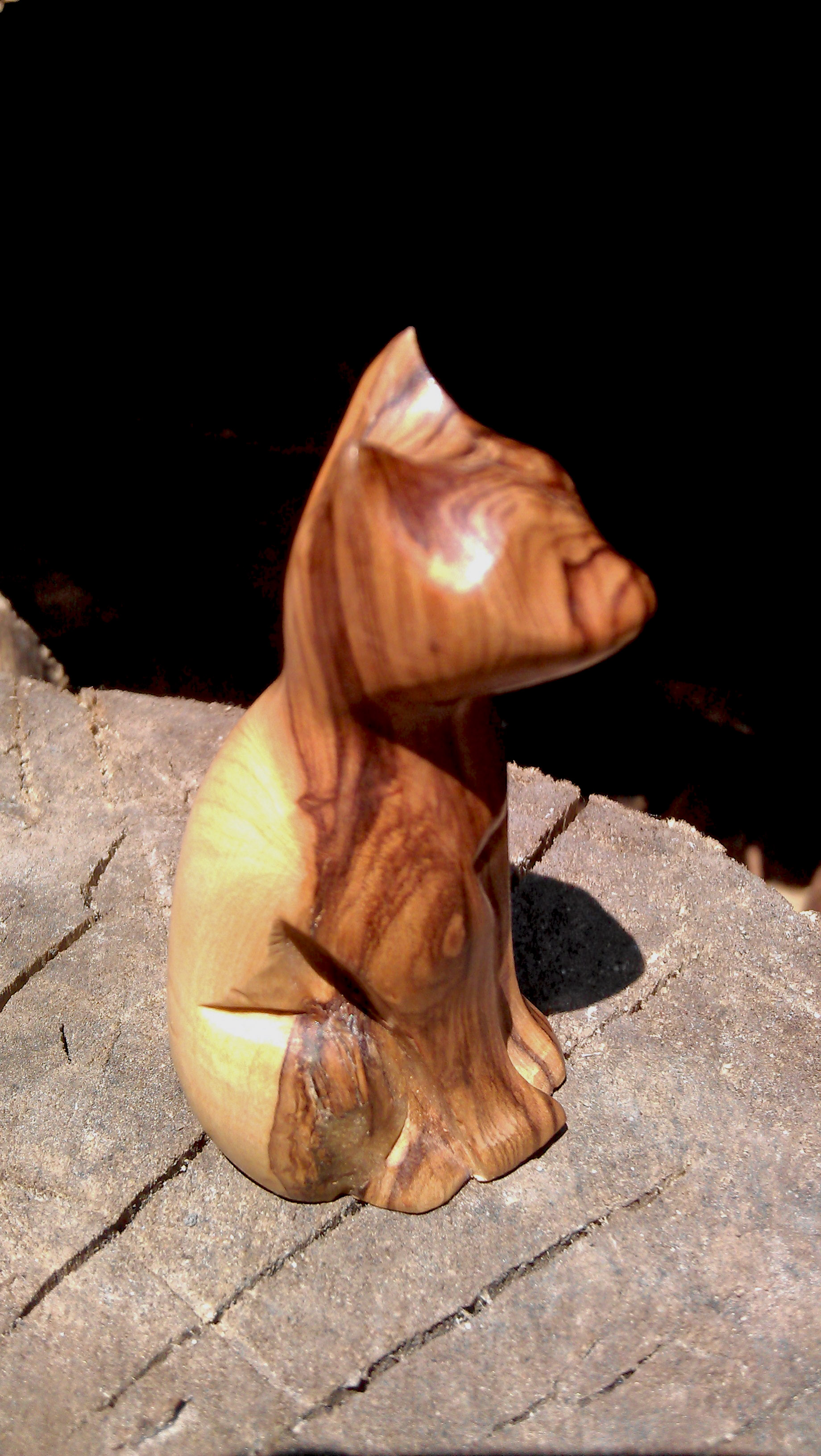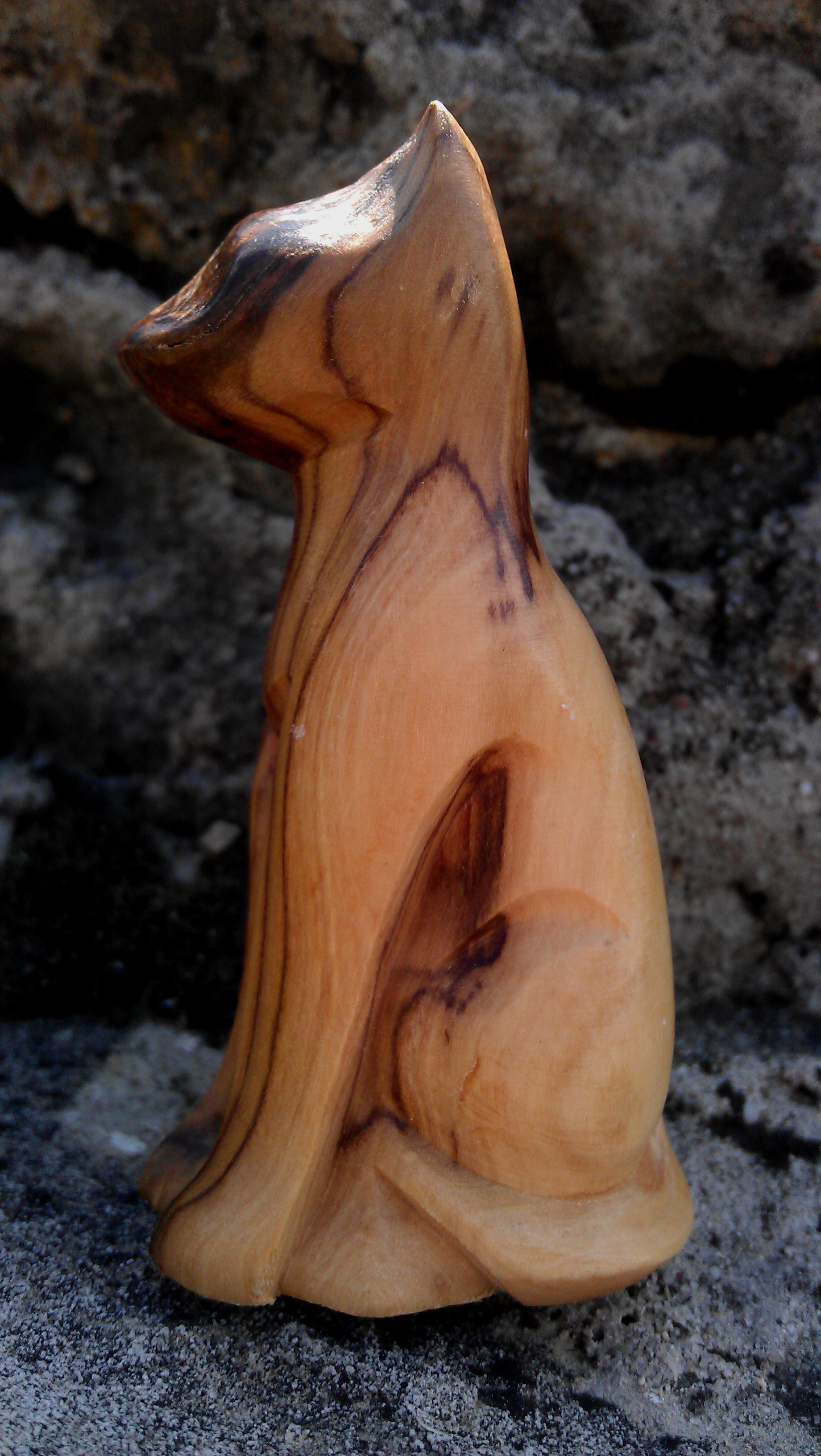 The third cat in this issue is the most exotic kitten that Olympia keeps in her collection. This small wooden beauty is only 10 cm tall (about 2 inches) and has arrived to Poland from Israel. The cat was a gift along with a wooden rosary and The Star of David keyring bought in the holy city of Jerusalem during a pilgrimage. We do not know what kind of wood the cat has been carved from (it is probably the olive tree) but we were told that all three items have been blessed by a priest (kohen or a rabbi). The figurine does not have eyes or mouth or whiskers but Olimpia thinks it has an air of mystery about it. We consider this cat to be a part of our own heritage as our great-grandmother was Jewish and it is nice to have something from her homeland with us.