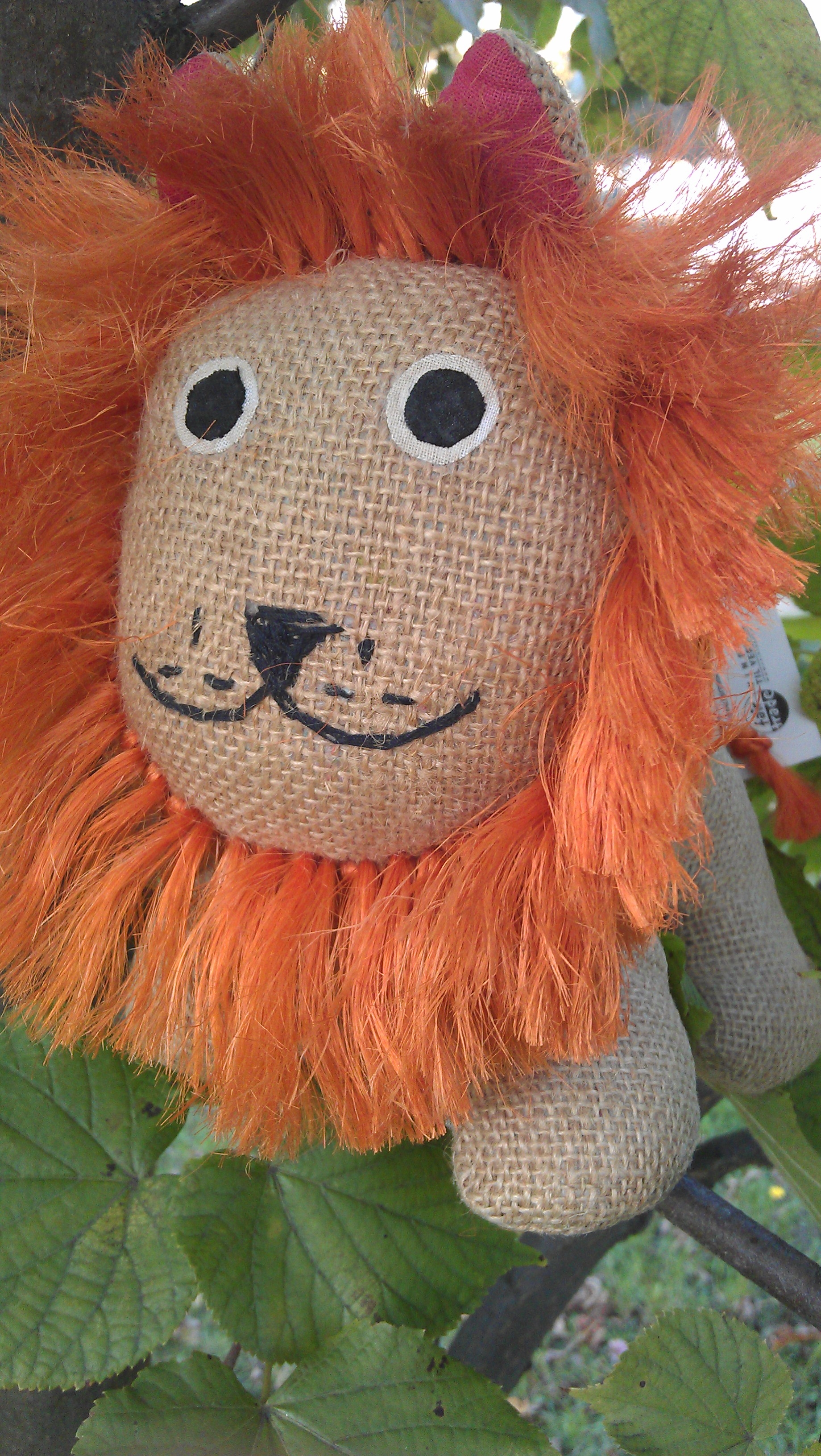 Kat-a-log cat number 73 is not your typical house kitten. It is not even a kitten at all! This beautiful hand made adult lion (just look at his impressive mane) has been made in Bangladesh by female artisan association for CORR the Jute Works Foundation as a part of the fair trade movement to activate local communities and provide its people with a chance to gain new skills and earn money. CORR foundation has been established in 1973 and has close ties to CARITAS. Fair Trade mascots are incredibly popular especially in Scandinavia where ecologically produced toys and unique design are high demand. Rita and Mal have purchased the lion at Roskilde Festival in 2004 at the Fair Trade Market near the Pavilion stage. The cat has been made from juta plant fibers that have been woven into stiff material (resembling raw linen) that is generally used in construction and traditional crafts. The material may be a bit rough to touch, but is incredibly flexible and strong. Lion’s mane has been colored with natural mineral paint made from red clay. It also used to glow in the dark, but after nearly a decade, the luminous pigment has faded and the glow is now barely visible. The lion is practically indestructible. It survived several trips aboard (Rita took it to America and Berlin), house re-decorations and still looks brand new. It was quite expensive for a poor students on a budget trip to the Roskilde Festival (nearly 120 Danish kronen), but worth every penny