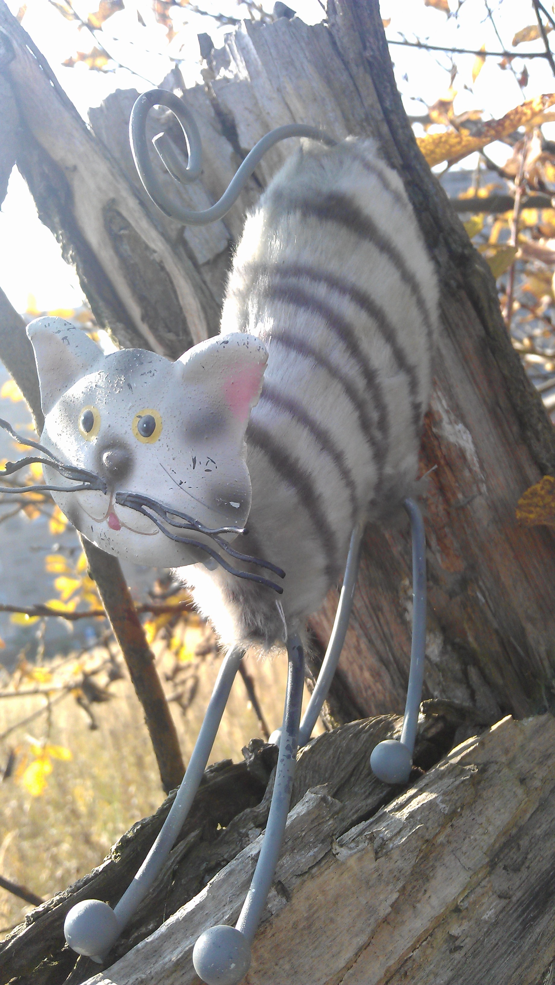Now, this is a story that hasn’t been published yet in any of the previous editions of Kat-a-log! A strange hybrid of metal, fake fur and ceramics, the kitten number 77 came into Rita’s possession through gambling. Yep, you have heard it correctly – to become a new owner of the cat, Rita had to participate in an annual charity lottery. The lottery ticket was priced at 5 PLN (Polish zloty) or £1 and the participants had to answer several questions correctly to win anything. Rita was very competitive and she fought like a lion to get her share. This unusual behavior attracted the attention of her c0-workers who jokingly nicknamed her “The Gambler”. As the prizes were prepared by the organizers (Altus Building management in Katowice, where Rita’s former employers were once located), we are not sure where the cat was made and by whom. A funny thing worth mentioning about this figurine is that the cat’s head is attached to a spring and it moves rapidly up and down every time the figurine is moved. Sadly, it is not visible on the pictures – what a great shame. Olympia is very fond of this incredibly weird looking cat and considers him her personal All right kids, we hope that you have enjoyed this December issue of Kat-a-log! Please stay tuned as Malicia and Olympia are working really hard to choose and edit new pictures from our archives. The next edition of your favorite cat collector magazine will be delivered shortly.
