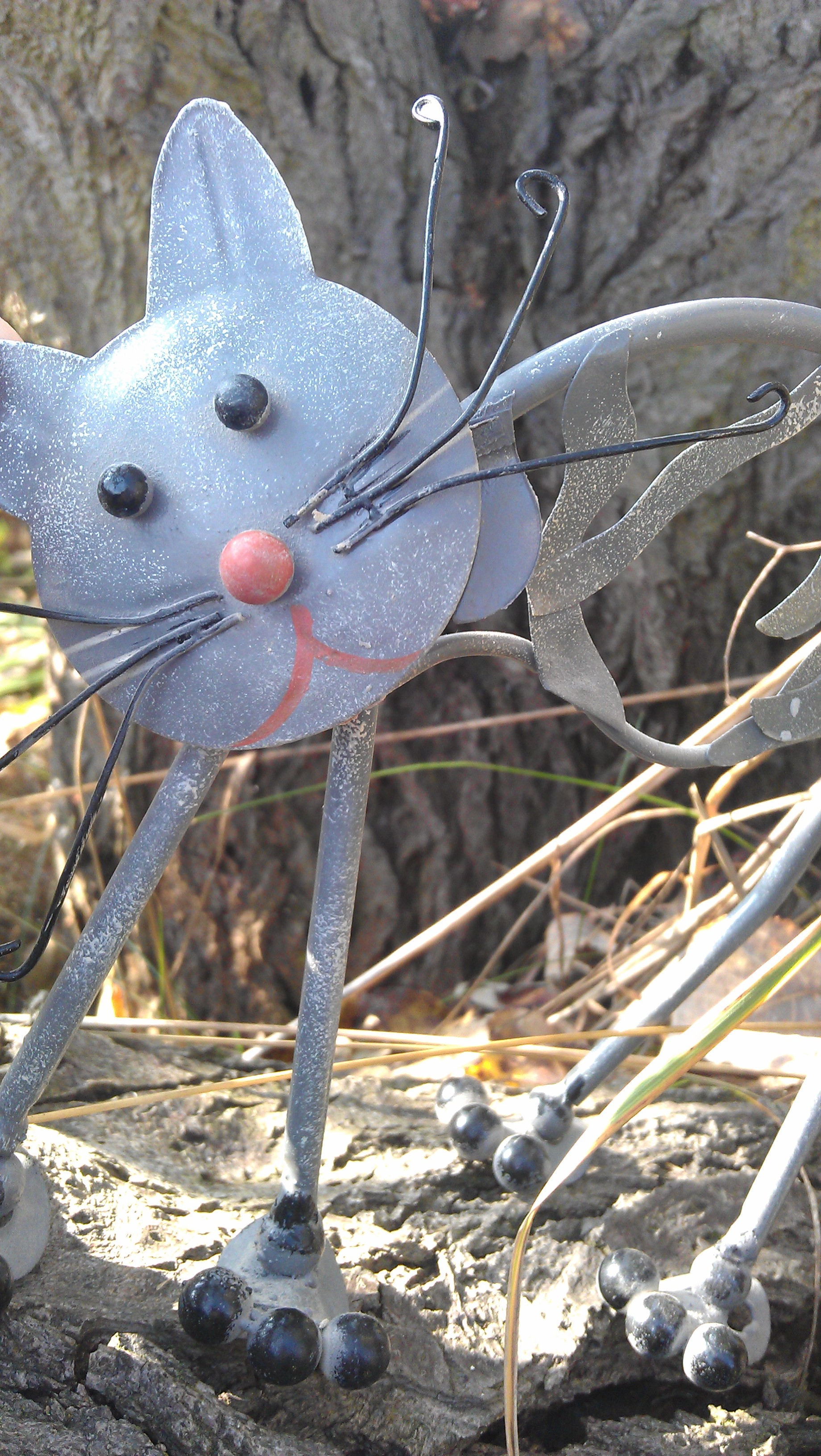 The last cat in our December special is very unique indeed. It is not a figurine, but a real (yet small) metal sculpture of a cat. The sculpture has been purchased by Olympia in early May 2005 during a family trip to Cracow. We do not remember the name of the art gallery or the name of the artist, who made the cat but the gallery was located near the Consulate General of the United States on Stolarska Street. Nobody was planning to go cat shopping on that day, as the trip was organized to help Rita apply for a business visa to the old, goode US of A. Since the visa was denied, the entire family felt that they needed a bit of feline retail therapy. Do not worry, Rita got her visa in the end and two months later she went off to NYC for a glorious three weeks of work and sightseeing. Olympia happily added another kitten to her ever-growing collection and to this day, the kitten reminds her of the social injustices her daughter had to go through 😀