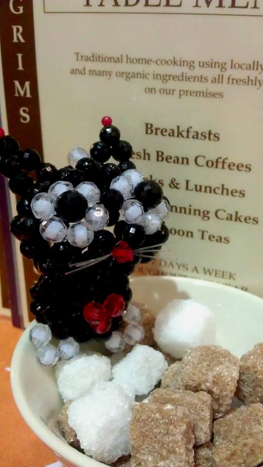 The fist two cats of this Christmas edition of Kat-a-log have been made by the same artist and purchased at the 19th Annual Christmas Victorian Fayre in Worcester. We are very sad to say, we do not know the name of the lady who makes those beautiful beads artworks, but she was Chinese and had problems with understanding us. All we managed to find out was that she is the owner of a small, two-person business called Genie Beads Crafts and has a shop on Mealcheapen Street in the city center of Worcester.