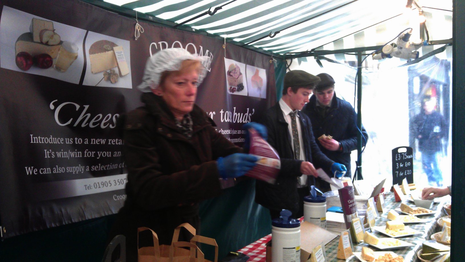 All cheese lovers are now asked to pay attention. In our humble opinion, Croome Cuisine is probably the best producer of cheese in the West Midlands. Generally, we try to avoid such compliments but this time, it is well deserved. Let us explain and you should have no doubts why they deserve all praise coming their way. Croome Cuisine has been established in 2009 by Nick Hodgetts, a cheese maker with more than 20 years of experience. Since the beginning, his company received fantastic reviews from clients and other cheese business professionals. Nick and his team reside on Pond Farm, close to the picturesque village of Whittington in Worcestershire where they produce more than 60 different kinds of cheese. Nick’s skills in cheese-making are second to none. He has received eleven gold and silver medals from British Cheese Association, several grand titles from International Cheese Festivals and Supreme Champion Cheese Award at the prestigious Three Counties Show for his delicious mature cheddar Herefordshire Hop variety, which is now regarded as a British cheese classic. We will not count honorable mentions or awards received at local level – there are just too many of them! To buy a piece of Hobsons Ale and Wholegrain Mustard mature cheddar, we had to queue for nearly half an hour and we are not exaggerating at all. It was very hard to speak to the crew as they were extremely busy serving waves and waves of cheese to hungry customers. Several quick pictures have been taken, so please excuse the poor quality. Croome Cuisne’s cheeses are not only delicious and flavorsome, they are also healthy (low fat and no artificial preserves) and ecologically made. If you ever have a chance to try them, do not hesitate.