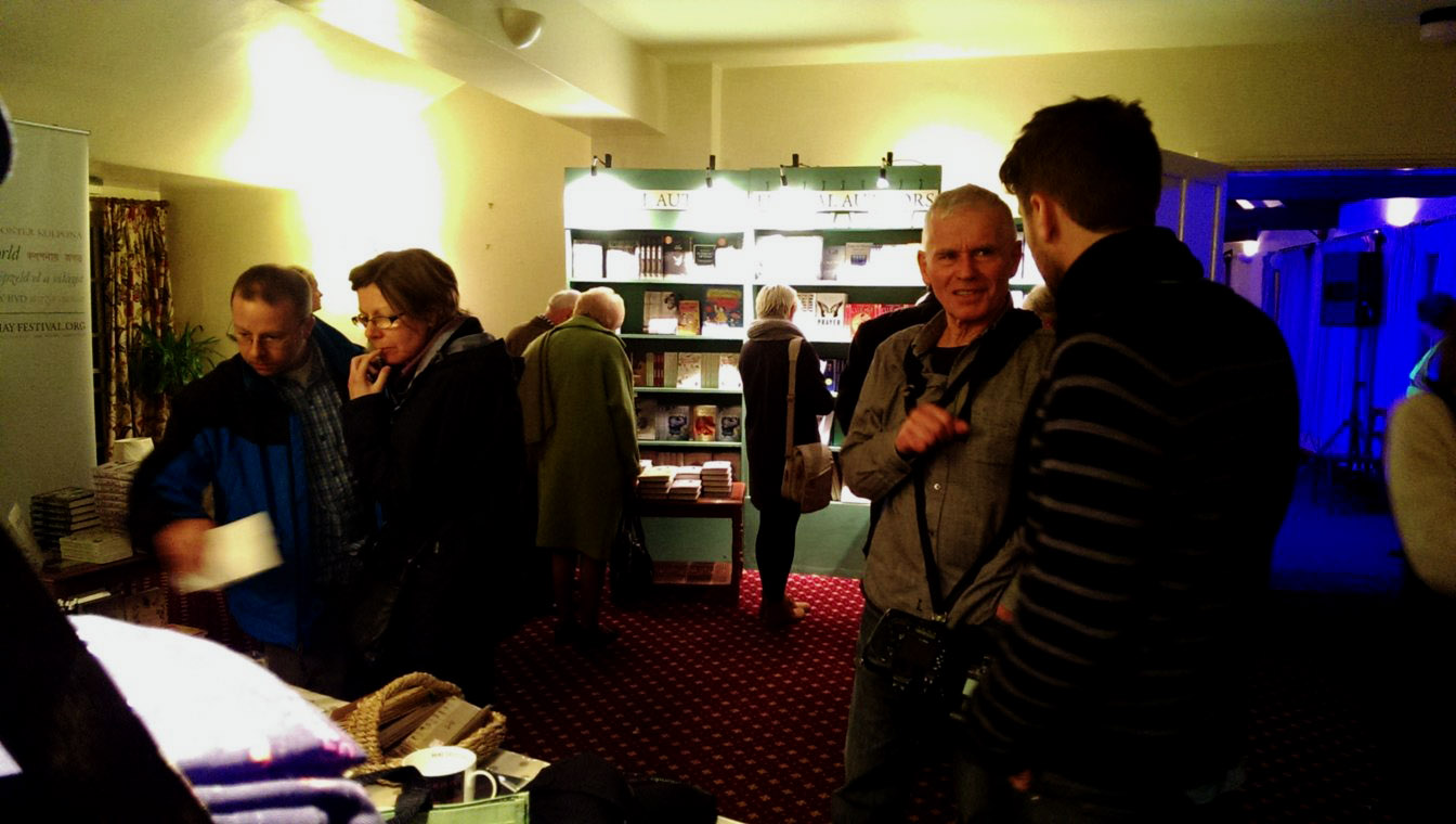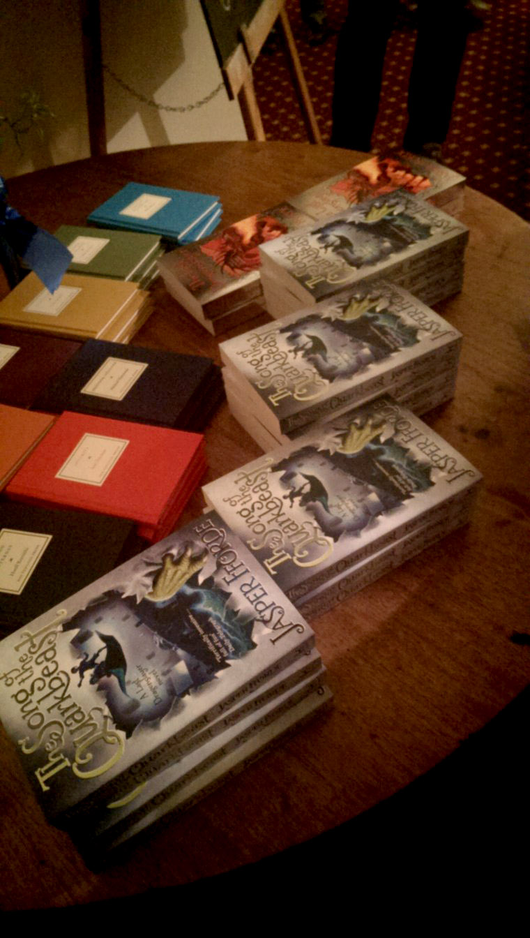 The main reason why we arrived at the Winter Weekend was not because of arts and crafts event taking place in the high town, or the street band playing carols near the Hay Castle ruins, but sorely to meet an excellent writer Jaspen Fforde. We have been big fans of Jasper’s talent for years and since meeting him nearly two years ago in Hereford, we were longing to learn more about his best selling Dragon Slayer saga. You don’t need to convince fantasy fans twice when one of their favorite authors is going to do a rare reading from his latest novels. Tickets were booked months in advance and when the moment arrived, off we went.