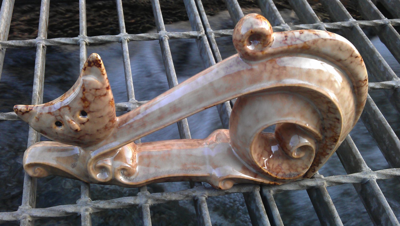 The newbie with a number of 102 is a cute ceramic white kitten so fresh as a bun in the bakery at 4:00 am in the morning! It was purchased in Cardiff just few days ago and photographed on the spot at the lovely Oriental Garden located at Atlantic Wharf waterfront in Cardiff Bay. We went to Cardiff to visit The Doctor Who Experience (we cannot recommend it highly enough!) and on our way to the car, we noticed a small arts and crafts event taking place right at the waterfront promenade. You know us very well so it it easy to predict what has happened next: Rita and Mal delayed the decision to go home and went off cat hunting. And it was a very good decision as we would never met a very talented artist named Sadie Hurley. Sadie is proud owner of small business called Sadie Hurley Ceramics that specializes in making beautiful earthenware items. She is an award winning artist with an excellent reputation in Wales and beyond. Sadie is a frequent exhibitor at the International Ceramics Festival in Aberystwyth, so please visit her if you have a chance. She is open for commissions and runs a popular ceramics workshops several times a year.