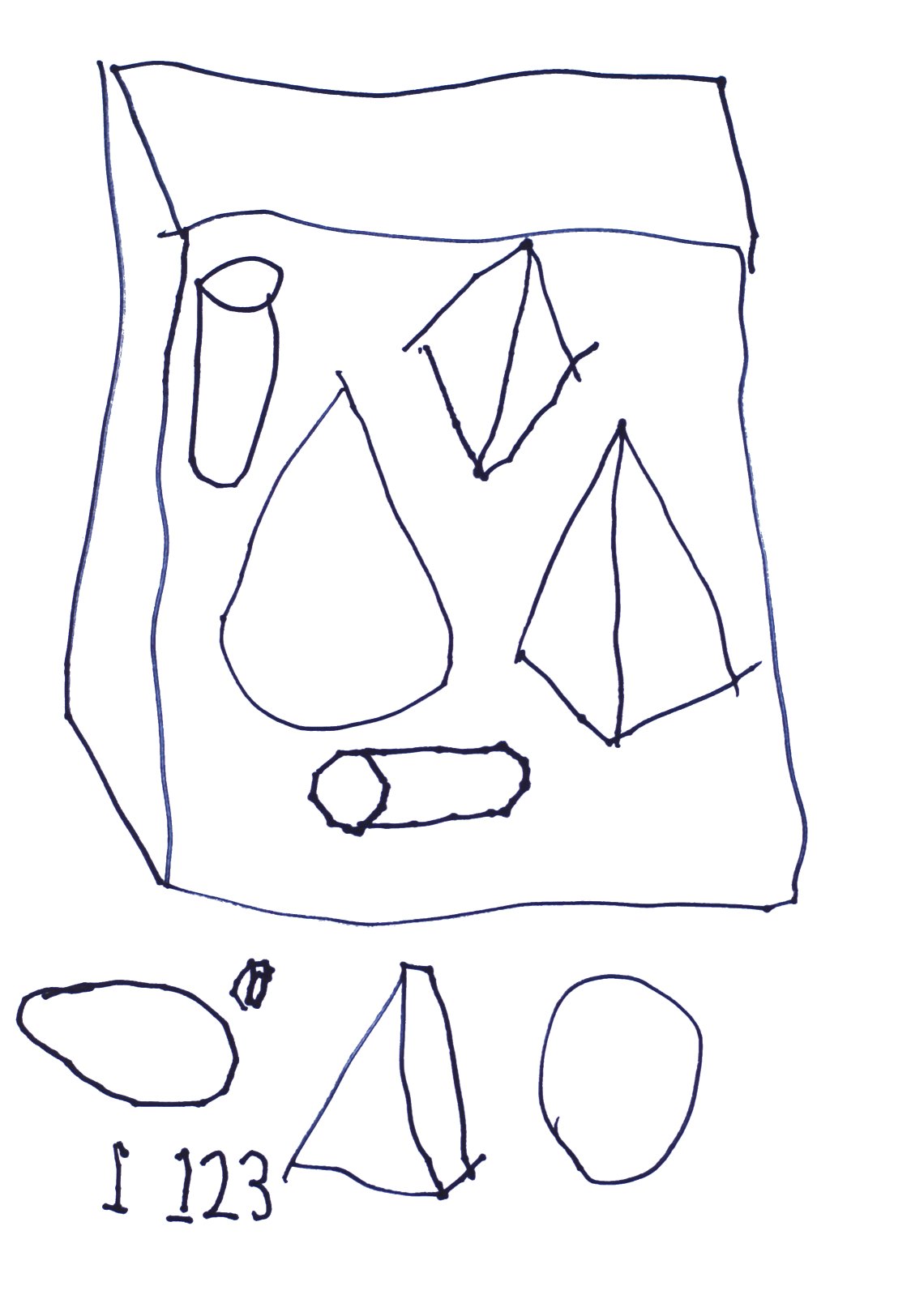 The next artwork has absolutely nothing to do with Earth Garden or our cat shop but is cool enough to be included. Sometimes visitors are leaving us some cryptic messages, mumblings and rumblings without any sense or coherence. The artwork drawn by Darryl (yes, the same one mentioned on page 27) shows a collection of geometric (mathematical) shapes both in 2D (plain) and 3D. The figures include cylinders, squares, triangles, ellipses, circles and cones. There is also a row of numbers at the bottom of the drawing that reads: “1 123”. If anybody knows what that means, please contact us at rdabrowicz@yahoo.com. Thank you.