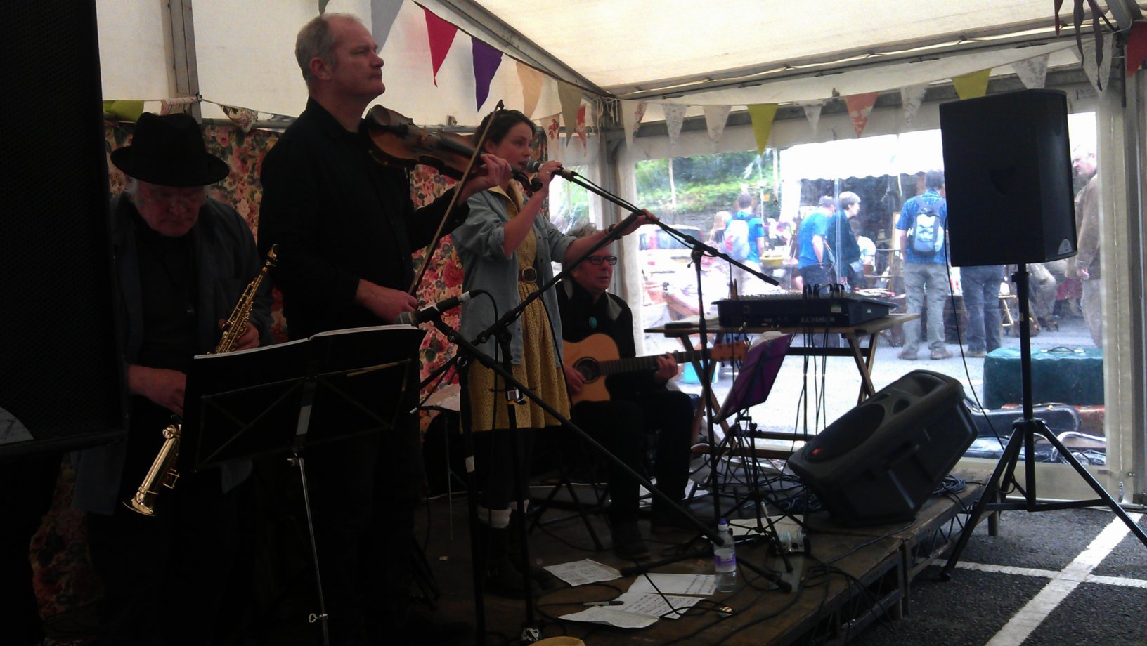 L for Little Rumba – Little Rumba is a well known Welsh band that has been performing and recording for quite some time now. They gave a fantastic street show in a performance tent called The Square, located right in the front of the castle and next to the entrance to food market. We were just passing by but when we heard the music, we had to stop and listen! The band is a true rock and roll act – they have skills, passion and a lot of stage charisma. The band consists of Pete Mustill (vocalist and guitarist), Hugh Colvin (saxophonist), John Hymas (violin, viola and accordion) and a female bassist Jacqui Savage