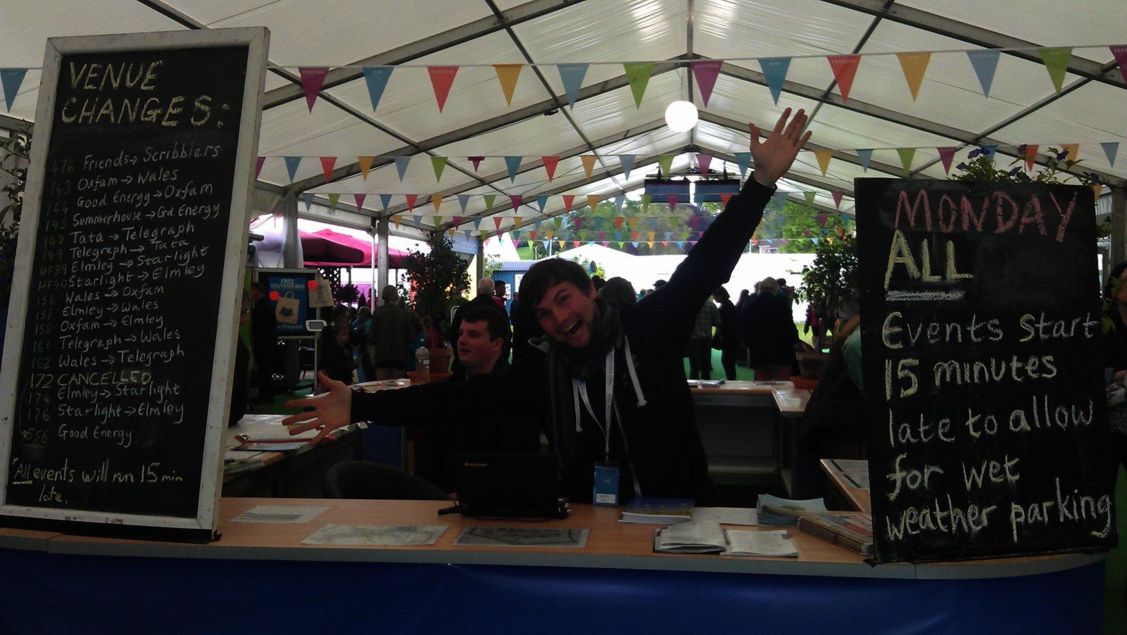S for Superstore – the main festival bookshop is located between Telegraph Stage (main media partner of the festival) and Llwyfan Cymru (Wales Stage). It is the only place where visitors can purchase books, maps, DVD’s and official merchandise. The bookstore is commonly known as “Superstore” . It is used for book signings as well and detailed author schedules are displayed among the shelves. If you want to be on featured on the TV, it is a place to go. BBC cameras are constantly present!