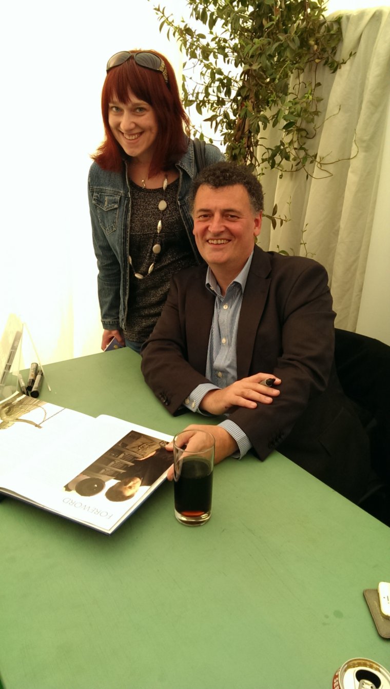 It was a good move as the queue grew to epic proportions in minutes. Armed with a DVD and Hay of Wye programme, Rita was probably the tenth person that came to the signing table. Just few word of advice dear readers from an old and grumpy event organizer. When you are standing in line, please mind the crowd behind you. Do not give the poor man 10 books to sign, one or two autographs are sufficient. Your entire collection doesn’t have to be signed! Do not demand a whole photo-shoot either – some fans were changing clothes and Mr Moffatt had to pose with the same people in different T shirts. Leave the children outside unless you wish to turn them into claustrophobics! Your three year old son is incredibly cute dressed as a Zygon or a Dalek, but he doesn’t know who Steven Moffat is yet and he is hungry, crying and simply wants to go home. Spare your fellow Whovians the headache. Say thank you’s! We were the only one to thank Mr Moffat for his time – he was truly touched. The man travelled from London and was going back on the same day!! And listen to the organizers, if they ask you to move, just do it. It was sad to hear Mr Moffatt commenting that he will need mental help after signing so many autographs.