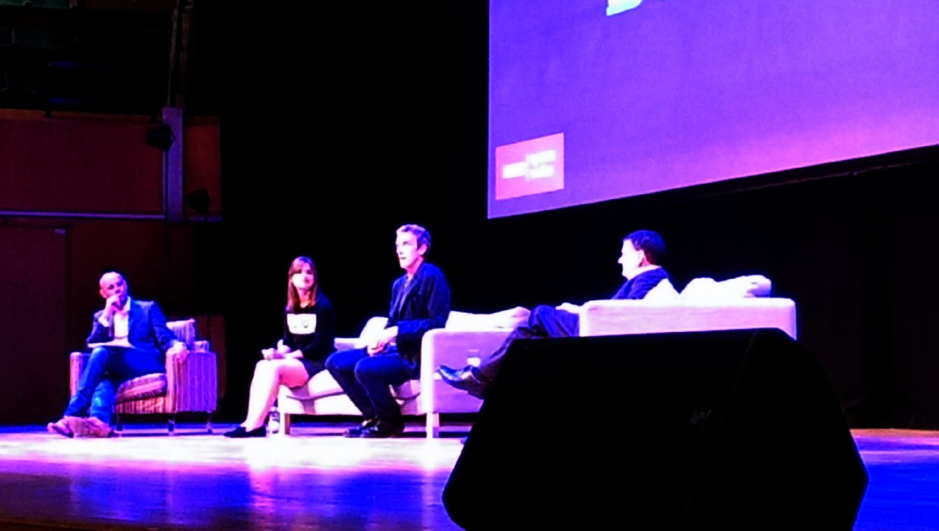 Q&A stands for Question and Answers. We have never attended that type of interview before so we were rather curious how it would look like. Well, it was very quick. Quick question, quick answer and another question. Some were asked by chosen members of the public, some were asked by Rhodri Talfan Davies. Questions ranged from utterly silly (“How many lives does the Doctor have?” to which Moffat answered “26” while hiding his face in his hands), obvious (“Will the Doctor Who Experience change since we have a new Doctor?”, the answer was “Yes”) to really complicated ones that nobody knew how to answer. Our favorite question came from a 4 year old boy named Elliott (with double T’s) who asked Peter Capaldi, if he could have his autograph. Mr Capaldi was very touched and gave the boy a big hug as well.