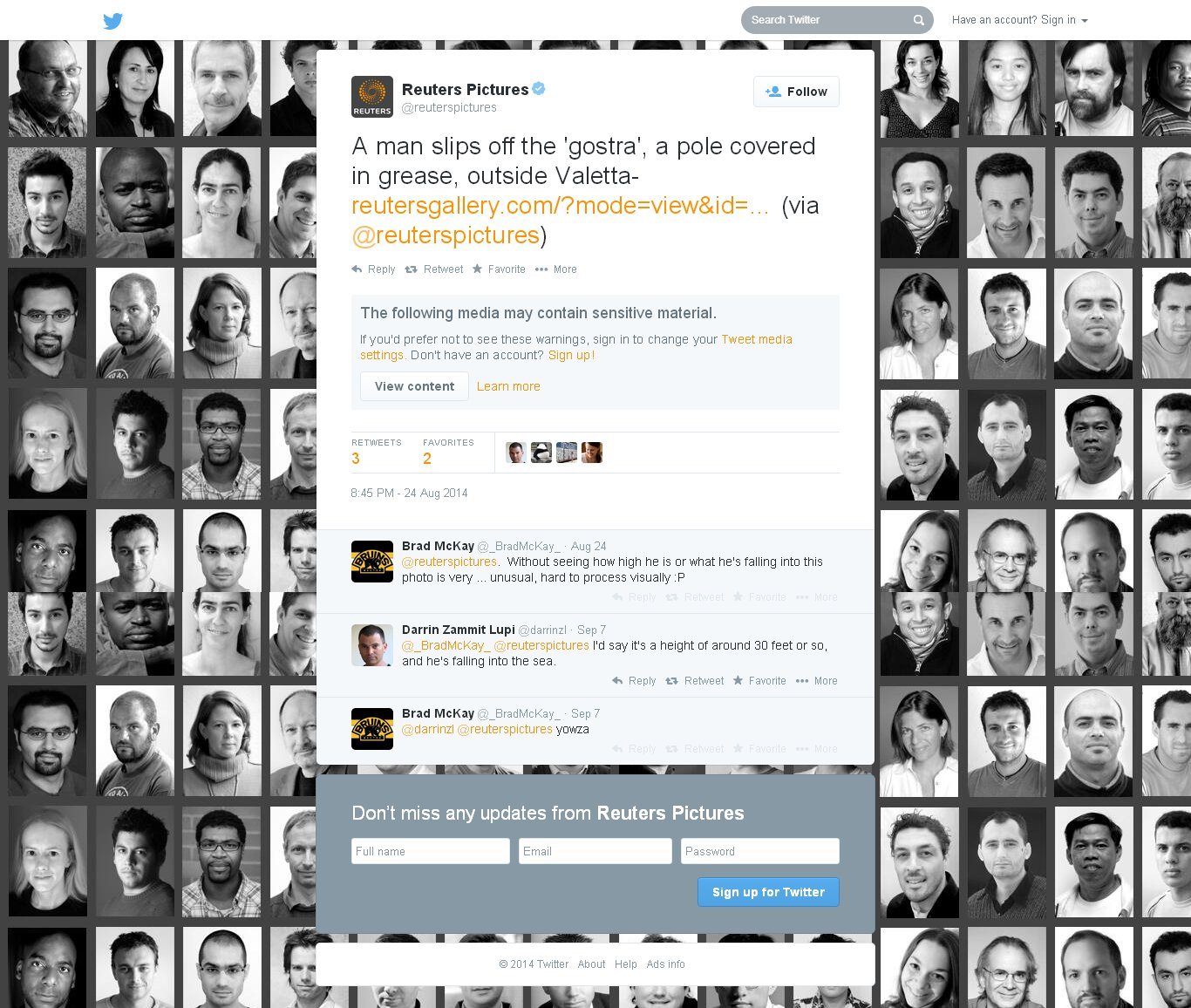 Twelve months later, the Gostra pictures are striking again. Darrin Zammit Lupi has been covering the competition this year as well, and the international press have picked up his pictures straight away. Here we go: from Europe to China, from The Middle East to Australia – Gostra 2014 has gone viral all over again.