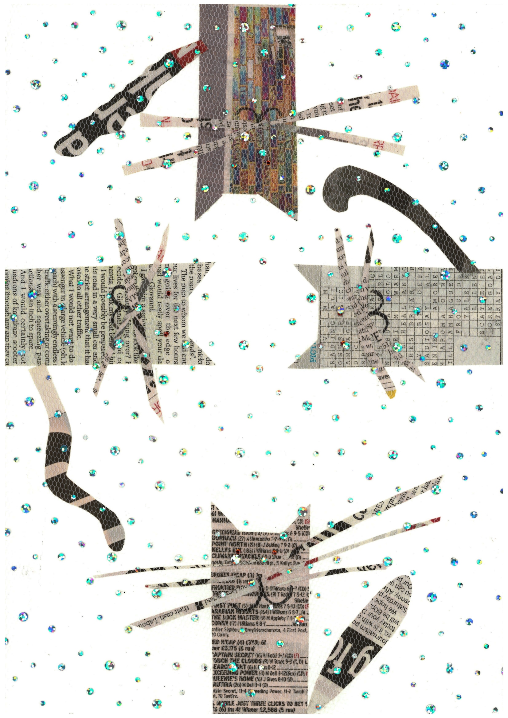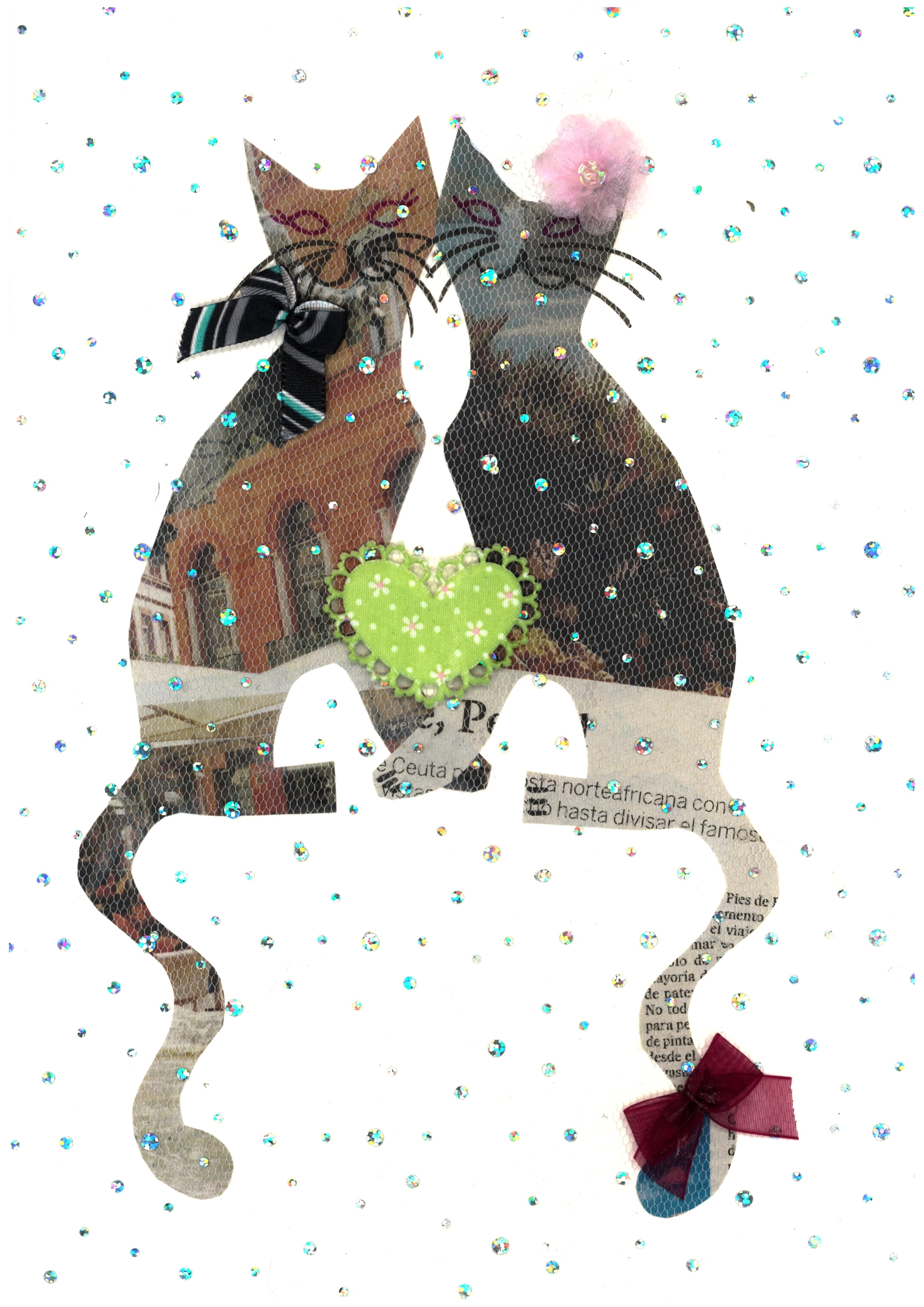 6. The Gathering – do you have old newspapers lying around the house? You don’t have to throw them away, you can use them to make a cat artwork! A bit of fancy cover on top (like this sparkly mesh from tailor’s shop again, 50p for a meter) and you are a master cat artist. Do not worry about glue smudges, the mesh will hide any imperfections!