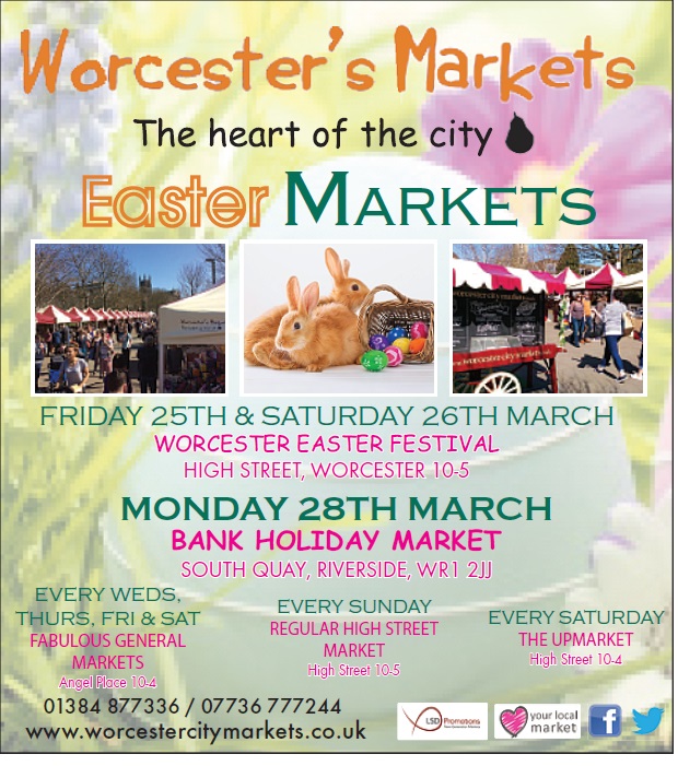 Worcester Easter Festival is just two days away now and we are very, very excited. Two-day markets always mean hard work, but we are extremely happy to see our usual customers return to our stall. We are also pleased to meet new people as well. We hope to be excused if we sound like doors to the crypt by the end of the day. High Street is fully packed every weekend and Easter time shopping spree could be twice as busy. After speaking to several hundred people, your voice refuses to work and there is nothing we can do about it!