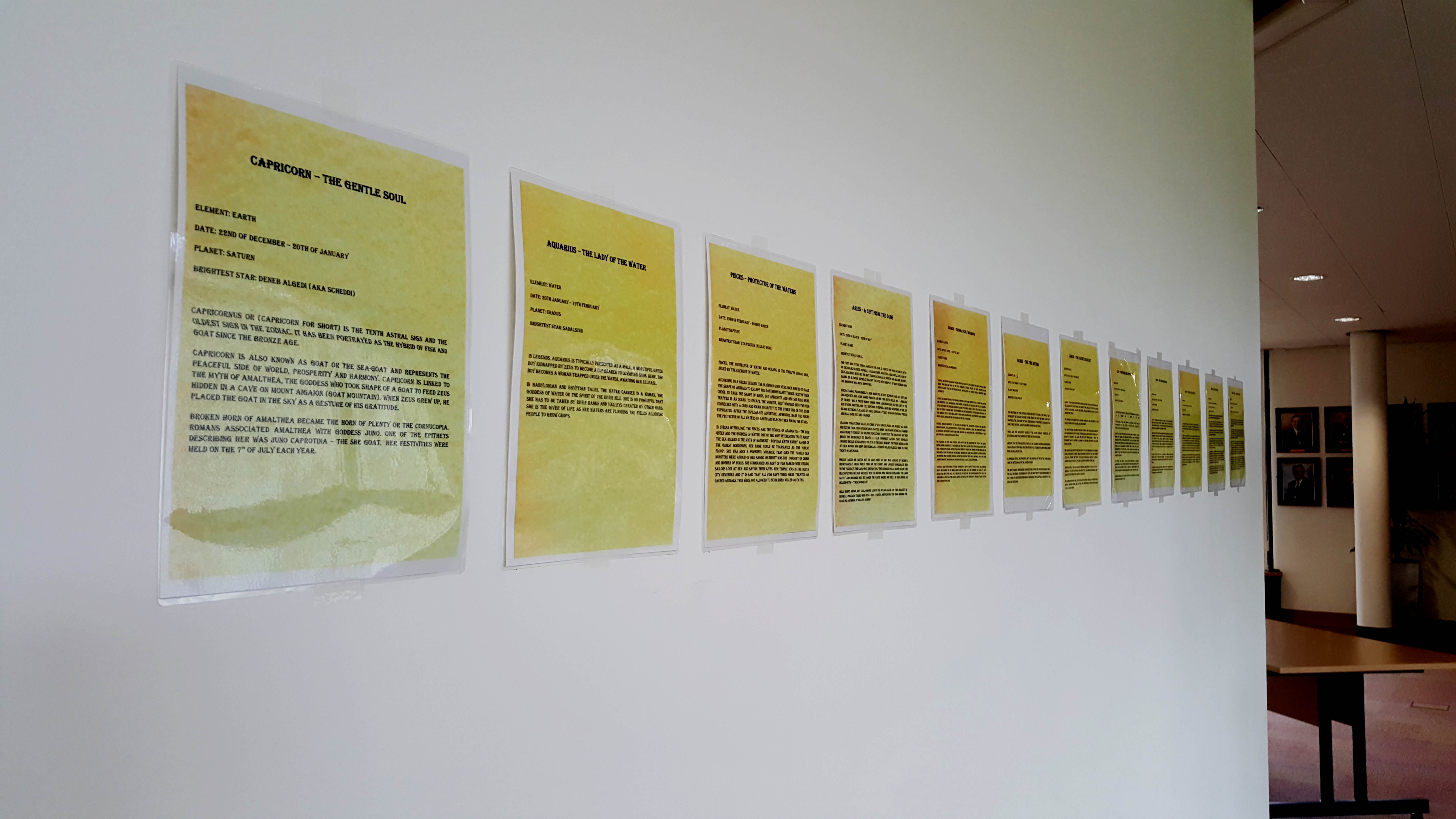 Each of the 11 remaining Zodiak signs were priced at £45. Sign descriptions were laminated and presented for the members of the public to read.