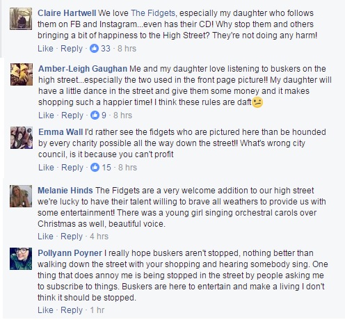 When Worcester News broke the story yesterday, a great thing has happened. People came out and voiced their admiration for buskers and street artists. The story on Facebook had over 200 comments, many of them mentioning  our leading band in town – The Fidgets. It was fantastic to read the praises – we can only hope that there`s no doubt right now what a treasure and ray of joy The Fidgets really are.