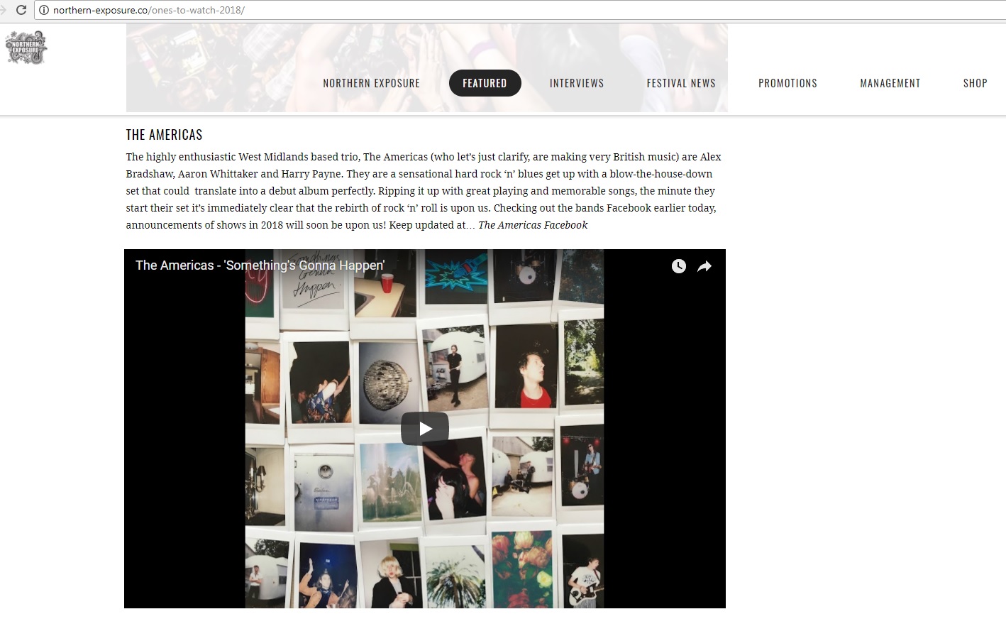 On January 10th, another influential zine – Northern Exposure also featured The Americas as one of the bands of 2018.