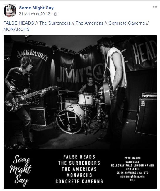 Same day (January 10th 2018), two gigs were announced. On January 24th The Americas would play a gig in London at The Rock Steady sharing the stage with Sleaze, Black Orchids and Willow Robinson as part of Independent Venue Week.