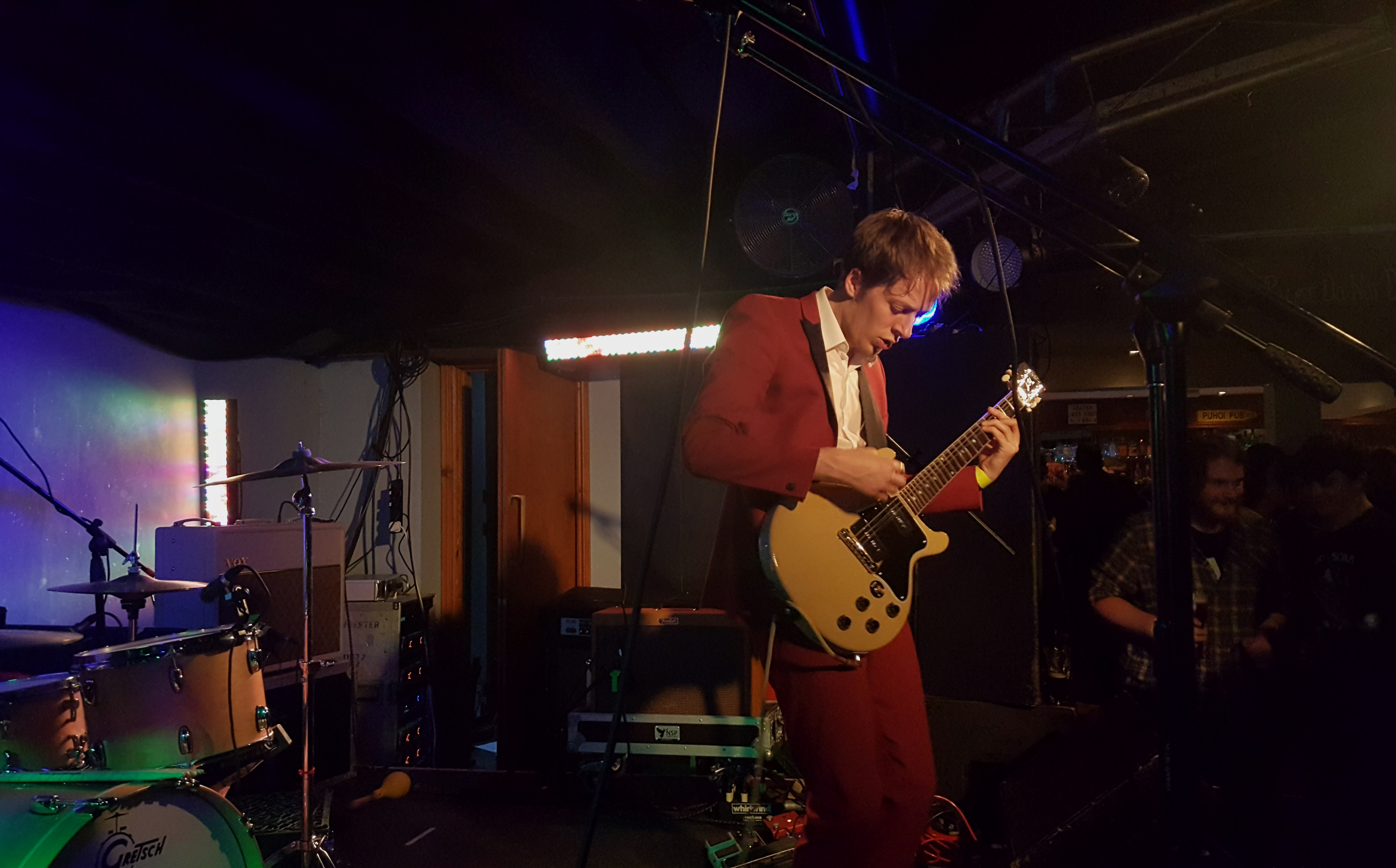 The band don’t play home that often anymore so it was time for a real celebration. Harry, Aaron and Alex came on stage wearing identical red suits, looking like British Invasion act out of the 70s. For the next hour they did not let anyone rest even for a second. Ugly, Rosanna, Hot Minute, Tenth of May and a new song Come On Down were delivered with passion and determination. Within two tracks, Harry let go of both his jacket and shirt and continued to play, dance and swing. Audience picked up pace and formed the biggest mosh pit Marrs Bar seen on an indie gig. There was crowd surfing, pogo dancing and dozens of people screaming the lyrics with their eyes closed.