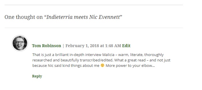 Also, thank you Tom Robinson for your feedback. We are blushing. It is a great honour as we consider ourselves fans of your music and we have always held your lyrics and writings in high esteem. Much power to you too Sir!