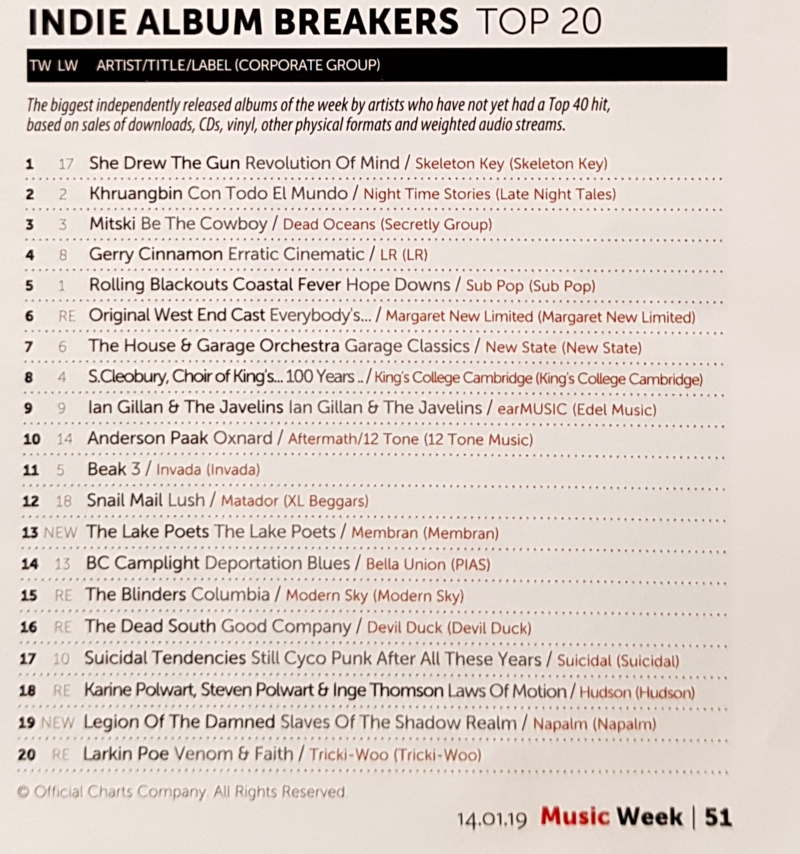 The Album returned to the charts on 14th of January 2019 at number 15th