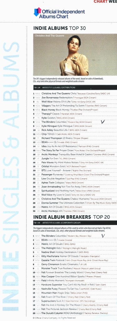 Indie Albums Top 30 and Indie Albums Brea
