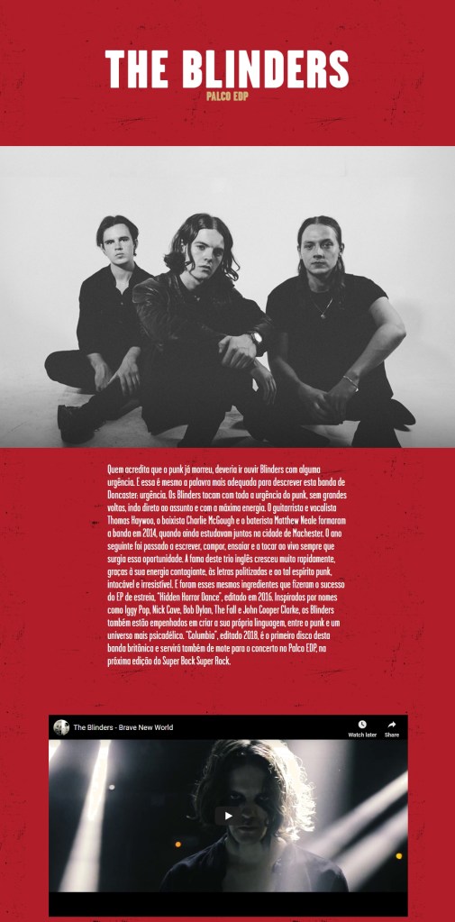The Blinders are mentioned on the website for Super Bok Super Rock!