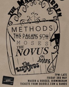 On May 3rd (Friday) a fundraiser for Musicians Against Homelessness will take place at The Wagon and Horses in Birmingham (Digbeth area). You will have a chance to see some of the best new indie acts with Methods, The Pagans S.O.H, The Novus, Moses, The Bohos and The Lizards – all hand picked by Gavin and the staff at the Magic Garden Studios. We can hardly wait!